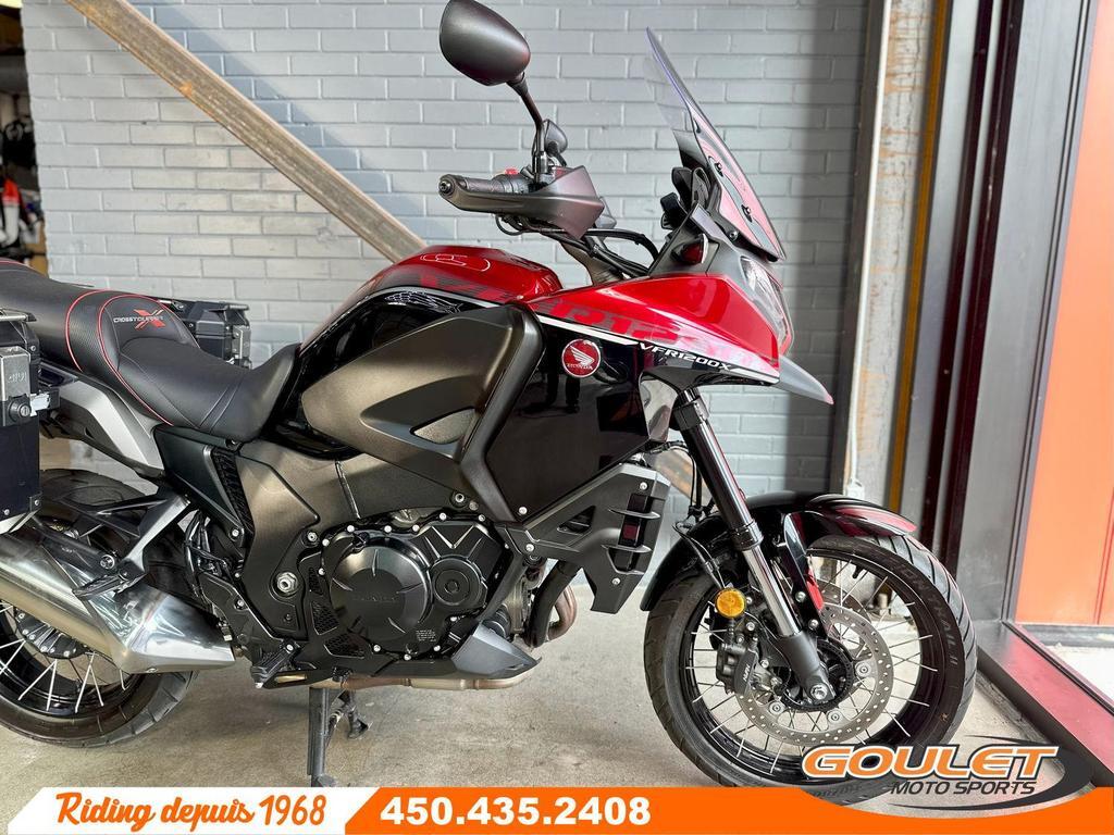HONDA VFR1200X CROSSTOURER   \*\*\* Super rare sur le marché - Moto ultime chez Honda avec moteur V4 et Driveshaft - Équipé des valises latérales \*\*\*   La Honda VFR1200X Crosstourer 2016 est une moto d'aventure haut de gamme, parfaite pour les longs trajets, les escapades sportives et même les routes plus exigeantes. Propulsée par un puissant moteur V4 de 1 237 cc, elle offre une sonorité unique, des accélérations franches et une grande fiabilité, signature de Honda.   - Moteur V4 de 1 237 cc puissant, souple et fiable  - Arbre d'entrainement (Driveshaft) arrière  - Cadre robuste assurant stabilité et précision dans toutes les conditions  - Suspension à long débattement pour le confort sur route et chemins  - Système de freinage combiné avec ABS pour une sécurité optimale  - Contrôle de traction (TCS) ajustable selon les conditions  - Position de conduite droite et confortable, idéale pour le tourisme  - Pare-brise ajustable pour améliorer la protection au vent   ?? Disponible chez Goulet Moto Sports Ste-Thérèse. Téléphonez au 450.435.2408   Financement disponible auprès de plusieurs institutions financières. 2e chance au crédit acceptée.   Goulet Moto Sports, votre concessionnaire de confiance depuis 1968. Fier représentant officiel de HONDA, APRILIA, MOTO GUZZI, VESPA, PIAGGIO, KTM, NIU, SURRON et URAL pour la grande région de Montréal. Large choix de motos d'occasion, toutes inspectées par nos techniciens qualifiés. Deux succursales pour mieux vous servir : Sainte-Thérèse (450.435.2408) et Saint-Jérôme (450.431.6622).   Goulet Moto Sports ne peut être tenu responsable des omissions, délais ou erreurs de transcription. Le prix affiché reflète l'état de l'unité. Pour diverses raisons, les prix peuvent différer de ceux indiqués en ligne. Les données fournies sont à titre de référence seulement et ne constituent pas une information contractuelle. Nous vous encourageons à nous contacter avant votre visite. Des frais supplémentaires tels que taxes, immatriculation, administration ou autres peuvent s'appliquer.   ?? Modèles comparables : BMW R1200GS, Yamaha Super Ténéré 1200, Triumph Tiger Explorer 1200, Suzuki V-Strom 1000, BMW 1250GS, Ducati Multistrada, Honda AfricaTwin  Garantie: 1 mois  ----------------------  HONDA VFR1200X CROSSTOURER   \*\*\* Super rare on the market - Honda's ultimate motorcycle with V4 engine and driveshaft - Equipped with side cases \*\*\*   The 2016 Honda VFR1200X Crosstourer is a premium adventure motorcycle, perfect for long journeys, sporty escapades, and even more demanding roads. Powered by a powerful 1,237cc V4 engine, it offers a unique sound, crisp acceleration, and Honda's signature reliability.   - Powerful, smooth, and reliable 1,237 cc V4 engine  - Rear driveshaft  - Robust frame ensuring stability and precision in all conditions  - Long-travel suspension for comfort on road and trail  - Combined braking system with ABS for optimal safety  - Traction Control System (TCS) adjustable to suit the conditions  - Upright and comfortable riding position, ideal for touring  - Adjustable windshield for improved wind protection   ?? Available at Goulet Moto Sports Ste-Thérèse. Call 450.435.2408   Financing available from several financial institutions. Second chance credit accepted.   Goulet Moto Sports, your trusted dealer since 1968. Proud official representative of HONDA, APRILIA, MOTO GUZZI, VESPA, PIAGGIO, KTM, NIU, SURRON, and URAL for the greater Montreal area. Wide selection of used motorcycles, all inspected by our qualified technicians. Two locations to better serve you: Sainte-Thérèse (450.435.2408) and Saint-Jérôme (450.431.6622).   Goulet Moto Sports cannot be held responsible for omissions, delays, or transcription errors. The price displayed reflects the condition of the unit. For various reasons, prices may differ from those indicated online. The data provided is for reference purposes only and does not constitute contractual information. We encourage you to contact us before your visit. Additional fees such as taxes, registration, administration, or other charges may apply.   ?? Comparable models: BMW R1200GS, Yamaha Super Ténéré 1200, Triumph Tiger Explorer 1200, Suzuki V-Strom 1000, BMW 1250GS, Ducati Multistrada, Honda AfricaTwin  Warranty: 1 mois