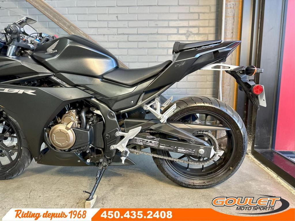HONDA CBR 500R ABS   \*\*\* La moto est super propre. Fiable et facile à conduire, c'est une Honda - PRIX RÉDUIT \*\*\*   La moto Honda CBR500R ABS 2016 est une sportive de moyenne cylindrée qui allie performance, agilité et confort au quotidien. Équipée d'un moteur bicylindre en ligne de 471 cc à injection électronique, elle offre une puissance fluide et une excellente économie d'essence, idéale autant pour les débutants que pour les pilotes plus expérimentés. Son design agressif, inspiré des grandes sportives Honda, lui donne une allure moderne et dynamique.   - Moteur bicylindre en ligne de 471 cc à injection électronique, offrant puissance et fiabilité  - Freins à disque avec ABS pour une sécurité optimale en toutes conditions  - Châssis léger et rigide procurant maniabilité et stabilité à haute vitesse  - Suspension avant télescopique et arrière Pro-Link pour un confort accru  - Position de conduite sportive mais ergonomique, adaptée aux longs trajets  - Carénage aérodynamique et look agressif inspiré des CBR de compétition   ?? Disponible chez Goulet Moto Sports Ste-Thérèse. Appelez au 450.435.2408   Financement disponible auprès de plusieurs institutions financières. 2e chance au crédit acceptée.   Goulet Moto Sports, votre concessionnaire moto depuis 1968. Fier représentant officiel de HONDA, APRILIA, MOTO GUZZI, VESPA, PIAGGIO, KTM, NIU, SURRON et URAL pour la grande région de Montréal. Nous proposons aussi un vaste choix de motos d'occasion, toutes inspectées par nos techniciens. Deux succursales pour mieux vous servir : Sainte-Thérèse (450.435.2408) et Saint-Jérôme (450.431.6622).   Goulet Moto Sports ne peut être tenu responsable des omissions, délais ou erreurs de transcription. Le prix affiché reflète l'état du véhicule. Pour diverses raisons, il peut différer du prix affiché en ligne. Les données sont fournies à titre indicatif seulement et ne peuvent être considérées comme contractuelles. Nous vous invitons fortement à nous contacter avant de vous déplacer. Des frais supplémentaires comme taxes, immatriculation, administration ou autres peuvent s'appliquer.   ?? Modèles comparables : Kawasaki Ninja 650, Yamaha R3, Suzuki GSX-500, KTM RC 390, Kawasaki Ninja 400. Aprilia RS457  Garantie: 1 mois  ----------------------  HONDA CBR 500R ABS   \*\*\* The bike is super clean. Reliable and easy to ride, it's a Honda - REDUCED PRICE \*\*\*   The 2016 Honda CBR500R ABS is a mid-size sports bike that combines performance, agility, and everyday comfort. Equipped with a 471cc inline twin-cylinder engine with electronic fuel injection, it offers smooth power and excellent fuel economy, ideal for both beginners and more experienced riders. Its aggressive design, inspired by Honda's great sports bikes, gives it a modern and dynamic look.   - 471cc inline twin-cylinder engine with electronic fuel injection, offering power and reliability.  - Disc brakes with ABS for optimal safety in all conditions.  - Lightweight and rigid chassis for handling and stability at high speeds.  - Telescopic front and Pro-Link rear suspension for increased comfort.  - Sporty yet ergonomic riding position, suitable for long rides.  - Aerodynamic bodywork and aggressive look inspired by CBR racing.   ?? Available at Goulet Moto Sports Ste-Thérèse. Call 450.435.2408.   Financing available from several financial institutions. Second chance credit accepted.   Goulet Moto Sports, your motorcycle dealer since 1968. Proud official representative of HONDA, APRILIA, MOTO GUZZI, VESPA, PIAGGIO, KTM, NIU, SURRON, and URAL for the greater Montreal area. We also offer a wide selection of used motorcycles, all inspected by our technicians. Two branches to better serve you: Sainte-Thérèse (450.435.2408) and Saint-Jérôme (450.431.6622).   Goulet Moto Sports cannot be held responsible for omissions, delays, or transcription errors. The price displayed reflects the condition of the vehicle. For various reasons, it may differ from the price displayed online. The data is provided for informational purposes only and cannot be considered contractually binding. We strongly encourage you to contact us before visiting. Additional fees such as taxes, registration, administration, or other charges may apply.   ?? Comparable models: Kawasaki Ninja 650, Yamaha R3, Suzuki GSX-500, KTM RC 390, Kawasaki Ninja 400, and Aprilia RS457  Warranty: 1 mois