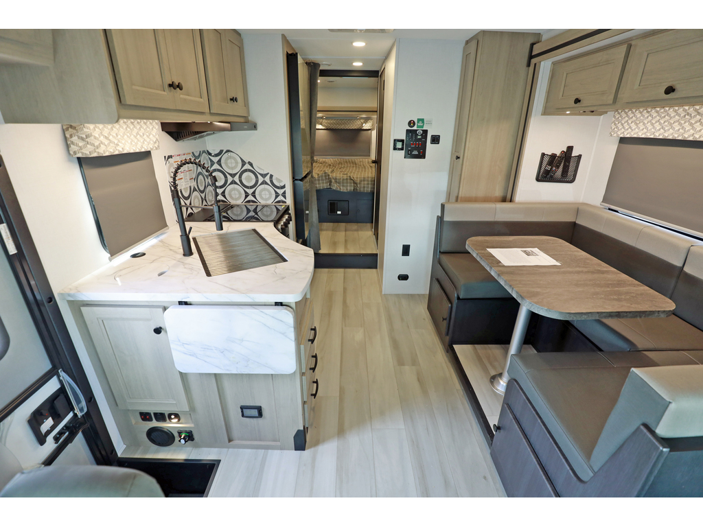 * disponible sur commande - available on order * Forest River Sunseeker 2440 2 extensions CLASSE C/B+ Skirt paint, Tissu : Stone, boiseries : Vermont ...