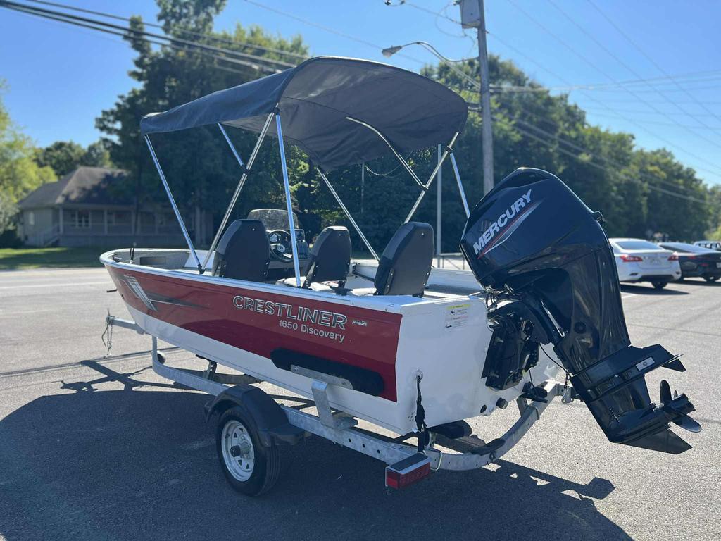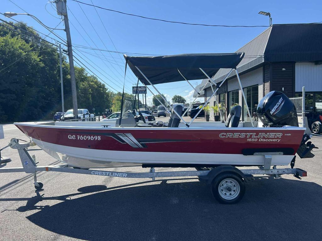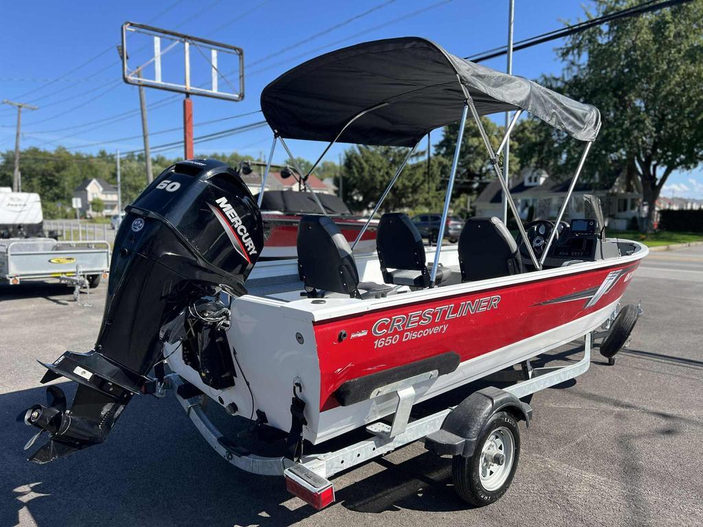 2021 CRESTLINER 1650 DISCOVERY   BELLE EMBARCATION POUR VOS SORTIES DE PÊCHE AU CHALET   16.5 PIEDS LARGEUR 6.4 PIEDS   ÉQUIPÉ DE L'OPTION DU PLUS GROS MOTEUR POSSIBLE. MOTEUR MERCURY 60 FORCES 98 HEURES   COQUE THERMO SOUDÉE   TOIT BIMINI   SONAR HUMMINDBIRD HELIX 5   SIDE CONSOLE AVEC PARE-BRISE   TOILE DE TRANSPORT   5 PERSONNES   PLATEFORME DE PÊCHE   3 SIEGES AMOVIBLES   PLANCHER VINYLE MARIN   835 LBS   REMORQUE CRESTLINER AVEC PNEU DE SECOURS INCLUSE   TOUTES NOS UNITÉS SONT MINUTIEUSEMENT CHOISIES, INSPECTÉES ET GARANTIES   FINANCEMENT DESJARDINS, NATIONALE OU SCOTIA   POUR CONFIRMER LA DISPONIBILITÉ OU INFOS SVP COMMUNIQUER AVEC LE DEPARTEMENT DES VENTES AU 450-413-1515 OU TEXTO AU 438-889-9454   FRAIS DE 99$ RDPRM ET 119$+TX PERMIS D'EMBARCATION