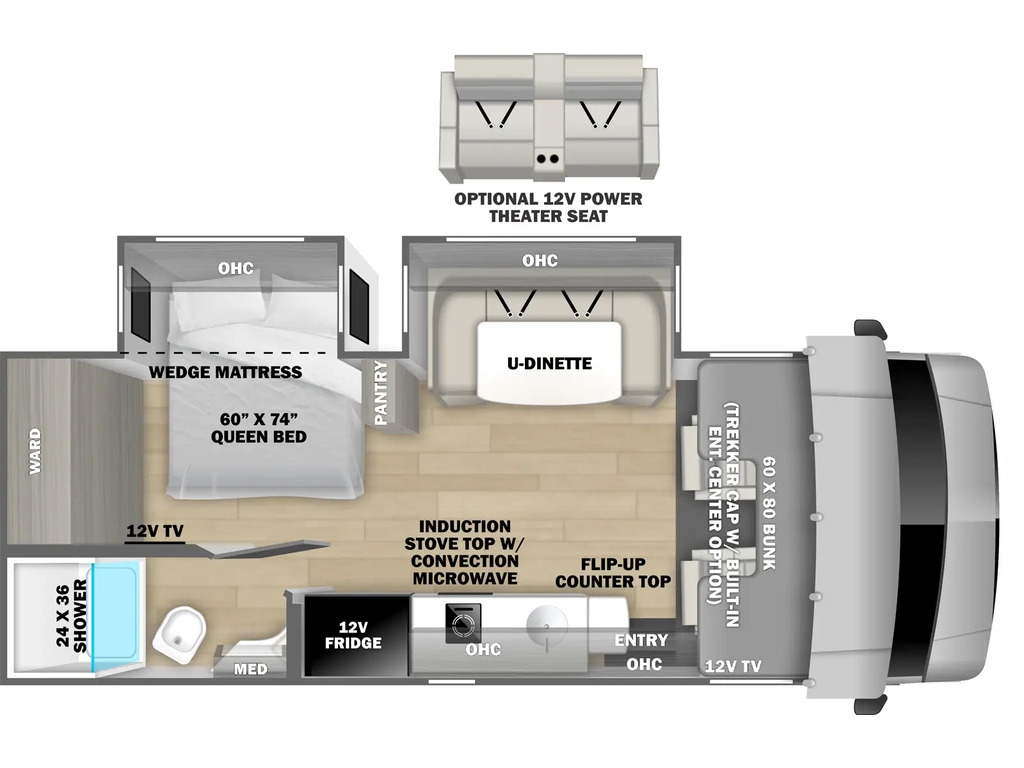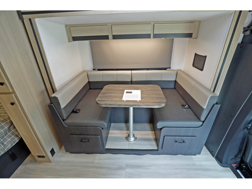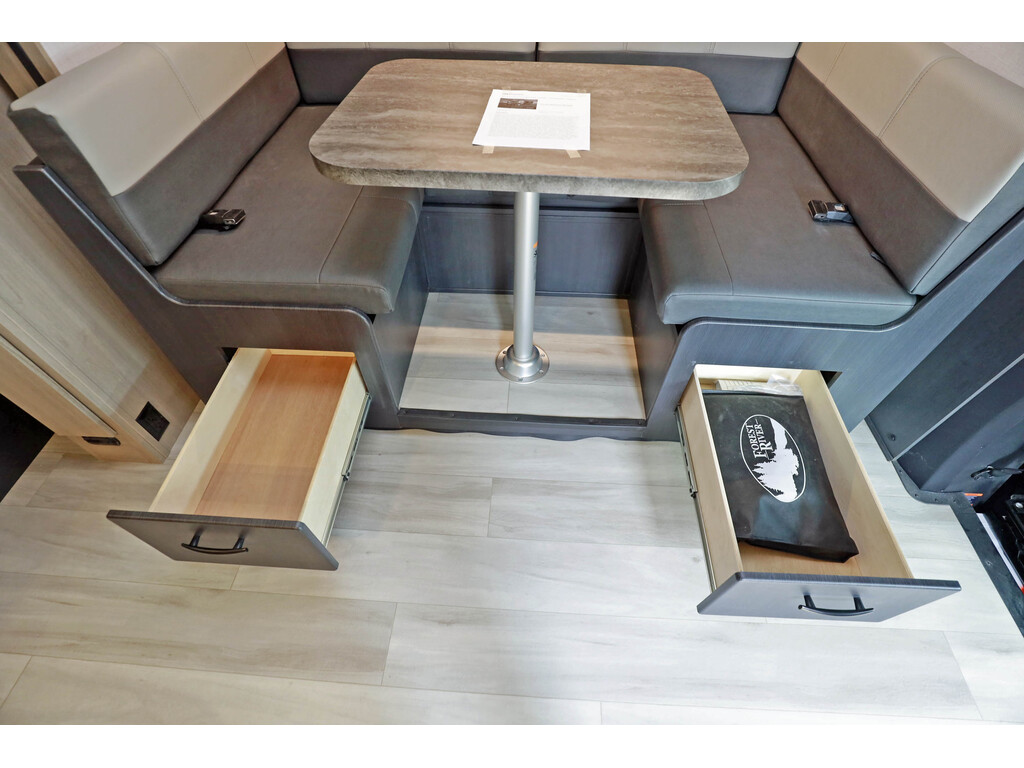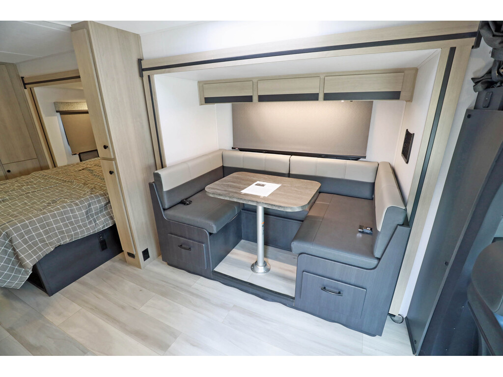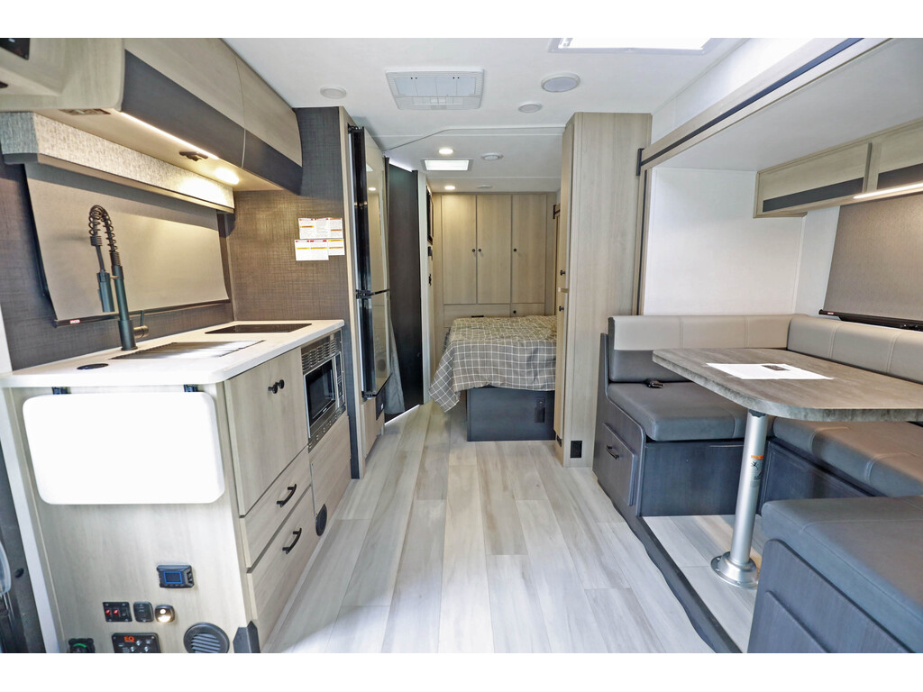 Disponible sur commande - Available on order Forest River Sunseeker 2500 3 extensions CLASSE C / B+ Skirt paint, Tissu : Slate , boiseries : Vermont o...