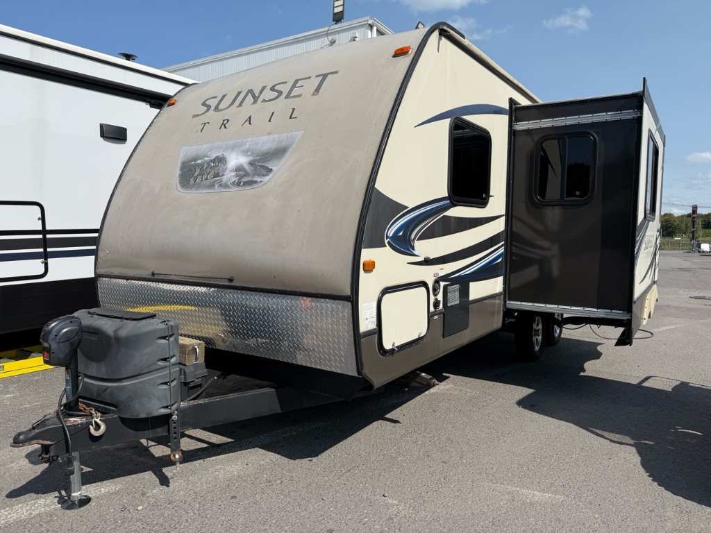 Sunset Trail sunset trail 220RB 2013La Sunset Trail Super Lite 220RB 2013 est une roulotte ultra-légère parfaitement adaptée aux couples ou aux campeurs qui veulent une traction facile sans compromis sur le confort. Sa conception bien pensée maximise l’espace intérieure tout en restant facile à remorquer avec un VUS ou une petite camionnette. Son aménagement comprend une chambre principale confortable, une dinette conviviale, une cuisine fonctionnelle et une salle de bain complète, vous offrant tout le nécessaire pour des escapades réussies, que ce soit pour des fins de semaine ou des séjours prolongés. ?? Super rabais offert – une occasion exceptionnelle à saisir dès maintenant! *** Prendre note que les photos et les options décrites peuvent différées *** Toute l'équipe de Centre du VR est fière de vous présenter le plus vaste inventaire de véhicules récréatifs neufs et d'occasions à vendre au Québec. Vous y trouverez notamment les marques Columbus, Rockwood, Impression, Kodiak, Coleman, Cruiser RV, Flagstaff, E-Pro, Springdale, Sunset Trail, Cougar, Chaparral, Bontrager Outdoors, motorisés Axis, Hurricane, Outlaw, Coachmen Cross Trail, Prism, Echelon, Fleetwood, Four winds, Compass, Beyond, Nova et Pixel. Remorques N&N, Apogée et Armorteck sont aussi disponibles. En inventaire pour vous, la série de génératrices Ducar. Vous avez un coup de coeur ? Envoyez-nous une demande d'information. Financement sur place. N'oubliez pas également que rien ne vaut une visite du modèle qui vous intéresse pour vous aider à prendre une décision éclairée. Passez donc nous voir afin de jeter un coup d'oeil plus détaillé à nos caravanes et caravanes à sellettes neuves.