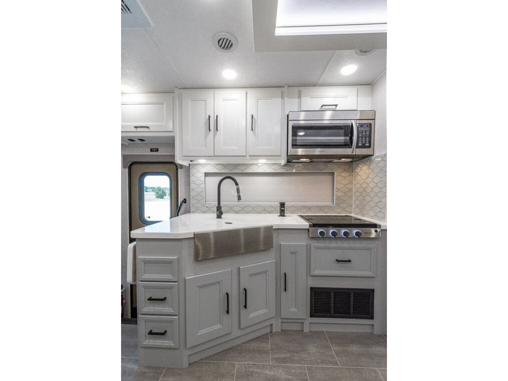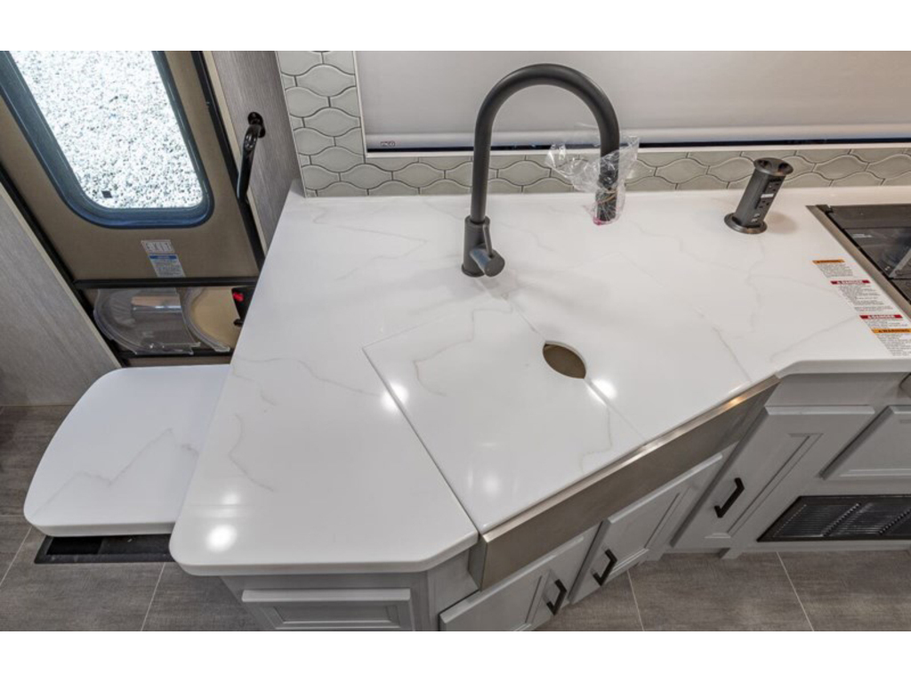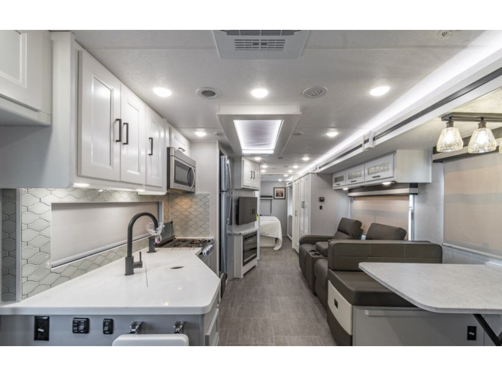 Coachmen Encore 325SS 2023. Le 325SS mesure environ 35 pieds 4 pouces de longueur et 1 extension a mur plein, un lit king size avec un système de rangement spécialement conçu, un grenier abattant électrique, une cheminée, des espaces de vie et de salle à manger spacieux, ainsi qu'une cuisine extérieure et un centre de divertissement. Cet Encore est exceptionnellement bien équipé et comprend un ensemble d'appareils électroménagers améliorés en acier inoxydable qui comprend un réfrigérateur résidentiel en acier inoxydable avec inverter de 1 000 W, un micro-ondes à convection, une grande table de cuisson ainsi qu'un magnifique évier de ferme en acier inoxydable ! Les options supplémentaires incluent le magnifique extérieur peint sur toute la carrosserie Encore, des sièges de cinéma électrique et une entrée laveuse/sécheuse empilable. Le Coachmen Encore présente une liste incroyable de caractéristiques standard et de points forts de construction. Vous trouverez les incomparables parois latérales Azdel™ Noble Select, un toit monobloc en fibre de verre, un générateur de 5,5 kW, un attelage de 8 000 lb, un service de 50 A, un moniteur de vision arrière avec caméras de recul et de vue latérales haute définition, des vérins de mise à niveau automatiqe , (2) A/C, tiroirs à fermeture douce, comptoirs à surface solide ™ et radio à écran tactile avec Apple CarPlay pour n'en citer que quelques-uns ! L'Encore est propulsé par le tout nouveau V8 Ford® de 7,3 L développant 350 ch et 468 lb-pi. couple et une transmission automatique TorqShift® à 6 vitesses. De plus, vous trouverez un système de suspension amélioré, un contrôle de traction, un volant inclinable et télescopique, des feux de tableau de bord à atténuation automatique, des roues en aluminium de 22,5 pouces. www.citecaravane.com 450-623-5050 170 rue dubois ,St-eustache J7P 4W9 ----------------------------------------------------------------------------------------------------------------------------------------------------------------------------- 2023 Coachmen Encore 325SS. The 325SS measures approximately 35 feet 4 inches in length and features a full-wall slide, king size bed with specially designed storage system, a power drop-down loft, fireplace, spacious living and dining areas, and an exterior kitchen and entertainment center. This Encore is exceptionally well-appointed and features the upgraded stainless steel appliance package which includes a stainless steel residential refrigerator w/ 1000W inverter, a convection microwave, large cooktop, as well as a beautiful stainless steel farm house sink! Additional options include the beautiful Encore full-body paint exterior, power theater seating, and a stackable washer/dryer entry. The Coachmen Encore features an incredible list of standard features and construction highlights as well. You will find the incomparable Azdel™ Noble Select Sidewalls, a one-piece fiberglass roof, a 5.5KW generator, an 8,000 lb. hitch, 50 Amp service, rear vision monitor w/ high definition backup and sideview cameras, automatic leveling jacks, (2) A/Cs, soft closing drawers, solid surface countertops ™, and a touch screen radio with Apple CarPlay to mention just a few! The Encore is powered by the all new Ford® 7.3L V8 with 350HP, 468 ft. lbs. torque, and a 6-speed TorqShift® automatic transmission. Additionally you will find an upgraded suspension system, traction control, tilt and telescoping steering wheel, auto dimming dash lights, 22.5" Aluminum wheelsà www.citecaravane.com 450-623-5050 170 rue dubois , st-eustache J7P 4W9