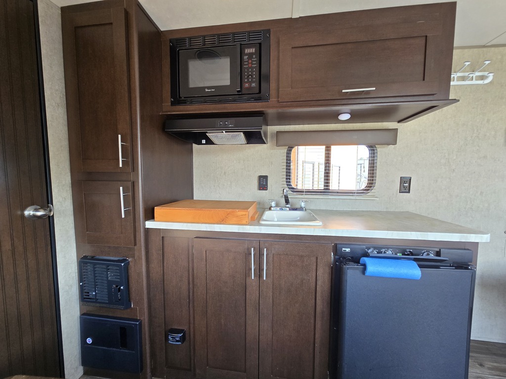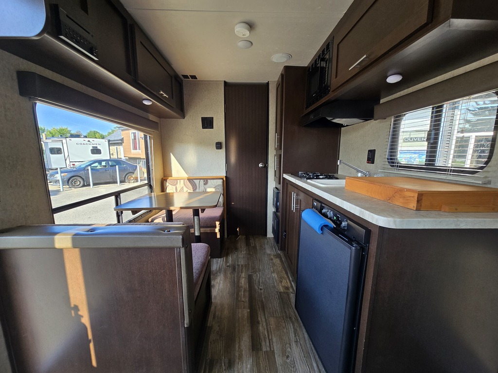 La Forest River Wolf Pup 16FQ 2017 est une roulotte compacte et polyvalente, idéale pour les couples ou les campeurs qui recherchent une unité légère et facile à remorquer. Avec un poids d’environ 2928 lb, elle peut être remorquée par plusieurs VUS bien équipés. Son aménagement pratique comprend un lit Queen à l’avant, une dinette convertible ainsi qu’une salle de bain complète avec douche et toilette, offrant un confort appréciable dans ce format compact. Bien équipée, elle comprend un climatiseur 13 500 BTU, une fournaise 20 000 BTU, un petit réfrigérateur qui optimise la superficie de comptoir, une plaque de cuisson et un micro-ondes. Capacité des réservoirs : 26 gallons d’eau fraîche, 23 gallons d’eaux grises et 23 gallons d’eaux noires, permettant de profiter pleinement des séjours au camping. ? Prix sans surprise — préparation complète et propane inclus ? Aucun frais caché — prix + taxes ? Financement disponible — Échanges acceptés ?? Visible chez VRML Roulottes ?? Contactez-nous pour planifier une visite.