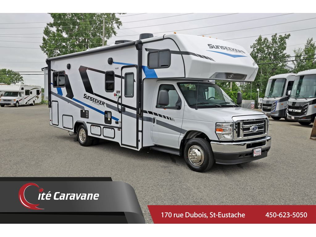 Forest River Sunseeker 2500 3 extensions CLASSE C Tissu : Lava boiseries : River teak , Ford V8 7.3L , Prise 30AMP , chauffe eau 6 gallons , chauffage 30,000BTU , A/C au toit 13.5BTU canalisé , ballons a air ride rite , murs de 2, fini gel-coat , toit en fibre de verre , auvent électrique , hitch de 7500lbs ,TV , frigidaire 10 pieds cube , tiroirs styles résidentiels , cuisinière a trois bruleur , stores de nuit , plafond de 7 pieds , génératrice de 4000watts onan, 2 batteries auxiliaires ,, micro-onde , sièges avant en cuirette appareils en stainless , arctic Pack ( 4 saisons ), couvert en fibre de verre , matelas queen , Prélart a grandeur Beauflor , antenne digitale, comptoirs de luxe, *PREMIUM CAMPING PACKAGE (mirroirs chauffants/électrique, caméra de recule et latérales, cinema maison 5.1 , black tank flush) + panneau solaire , 1230$+txs/MOIS ! www.citecaravane.com 450-623-5050 170 RUE DUBOIS , ST-EUSTACHE, SUR LE BORD DE LA 640! UNE ENTREPRISE FAMILIALE A VOTRE SERVICE DEPUIS 1973 ! , DÉPOSITAIRE NUMÉRO 1 FOREST RIVER SUNSEEKER ! LE SPÉCIALISTE DU VR AU QUÉBEC ! Forest River Sunseeker 2500 3 slides CLASS C fabric : Lava , wood : River teak , Ford V8 7.3L , 30AMP , 6 gallon water heater , 30,000BTU heater , 13.5BTU ducted roof A/C , ride rite air suspension , 2inch thick walls , gel-coat exterior , fiberglass roof , electric awning , 7500lbs hitch , TV , 10 cubic feet fridge , residential style drawers , 3 range burner oven , micro-wave , night shades , 7 feet high ceilings , 4000watts Onan generator, 2 auxiliary batteries, , leatherette front seats , stainless steel appliances , arctic pack ( 4 seasons ) , fiberglass front cap , queen matress , Beauflor linoleum throughout , Digital Antenna ,Upgraded countertops,*PREMIUM CAMPING PACKAGE (heated/electric mirrors,back up and side cameras, 5.1 surround sound,black tank flush)+ Solar Panel . 1230$+txs/MONTH. www.citecaravane.com 450-623-5050 ! CALL US TODAY ! Cité Caravane, 170 rue Dubois in Saint-Eustache, adjacent to the 640 highway. A FAMILY OWNED BUISNESS SINCE 1973 ! QUÉBEC s RV SPECIALIST !