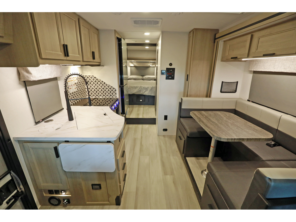 Disponible sur commande - Available on order Forest River Sunseeker 2500 3 extensions CLASSE C / B+ Skirt paint, Tissu : Slate , boiseries : Vermont o...