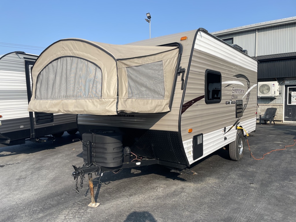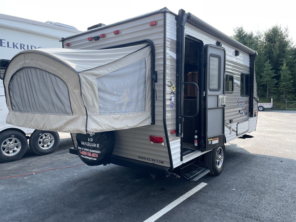 SPORTSMEN 160RBT 2019 PAR K-Z, LONGUEUR DE PLAN DE PLANCHER DE 16 PIEDS, LONGUEUR HORS TOUT DE 18.83 PIEDS, ROULOTTE POUVANT ACCUEILLIR JUSQU'À 8 PERSONNES POUR DORMIR, PNEU DE SECOURS, AUVENT ÉLECTRIQUE, POIDS DE SEULEMENT 2700 LBS, 2 GRANDS LITS DE 74'' X 54'', BANQUETTE LIT DE 70'' X 38'', BANC POUVAIT FAIRE UN LIT DE 69'' X 41'', ESPACES DE RANGEMENT RENDANT L'HABITACLE TRÈS FONCTIONNEL TOUT EN GARDANT LES COMMODITÉS SUIVANTES; GRAND FRIGO AVEC CONGÉLATEUR FONCTIONNANT AU PROPANE, MICRO-ONDES, FOUR AU PROPANE À 3 RONDS AVEC HOTTE, AIR CLIMATISÉ, CHAUFFE-EAU, CHAUFFAGE, FOYER, BAR DE SON ET ENCORE PLUS! TRÈS BELLE ROULOTTE AVEC BEAUCOUP DE RANGEMENT! COUP DE COEUR ASSURÉ! VOUS CHERCHEZ UNE BELLE ROULOTTE DE QUALITÉ AU MEILLEUR PRIX ALORS, NOUS AVONS CE QU'IL VOUS FAUT. CELLE-CI EST LA PLUS BELLE DU MARCHÉ. ROULOTTE VENDU INSPECTÉE ET GARANTIE. PASSEZ NOUS VOIR AU 174 ROUTE DU PRÉSIDENT KENNEDY, BEAUCEVILLE, G5X 1P4, À SEULEMENT 40 MINUTES DES PONTS DE QUÉBEC. LIVRAISON DISPONIBLE PARTOUT AU QUÉBEC! PROFITEZ DE NOTRE FINANCEMENT RAPIDE ET FAÇILE. POUR PLUS D'INFOS, SANS FRAIS 1-888-799-0874, BUREAU 418-774-5066, CELL OU MESSAGE TEXTE KEVIN 418-386-0025 AU PLAISIR DE VOUS SERVIR ET À BIENTÔT! TOUJOURS LES MEILLEURS PRIX DU MARCHÉ WWW.AUTOMAGUIRE.COM *** NOUVEAUTÉS CHAQUE SEMAINE ***