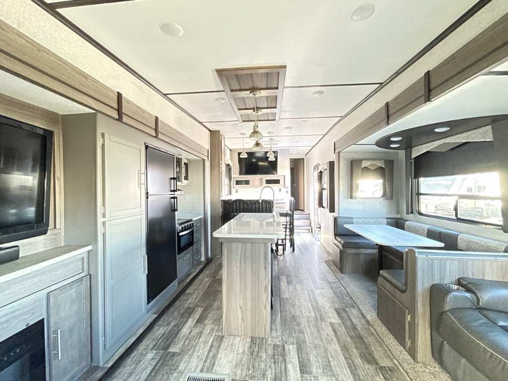 CrossRoads Rv Volante 370BR 2021Fifth Wheel Volante 370BR 2021 Mesure 41' et pèse 10 784lbs Elle possède : - Coin et comptoir bar - îlot avec banc et lavabo intégré - Cuisinière avec fourneau, micro-onde, réfrigérateur - Grande banquette en U - Canapé théâtre - Canapé-lit - Foyer électrique et téléviseur - Chambre des maîtres avec garde-robe - Salle de bain complète *** Prendre note que les photos et les options décrites peuvent différées *** Toute l'équipe de Centre du VR est fière de vous présenter le plus vaste inventaire de véhicules récréatifs neufs et d'occasions à vendre au Québec. Vous y trouverez notamment les marques Columbus, Rockwood, Impression, Kodiak, Coleman, Cruiser RV, Flagstaff, E-Pro, Springdale, Sunset Trail, Cougar, Chaparral, Bontrager Outdoors, motorisés Axis, Hurricane, Outlaw, Coachmen Cross Trail, Prism, Echelon, Fleetwood, Four winds, Compass, Beyond, Nova et Pixel. Remorques N&N, Apogée et Armorteck sont aussi disponibles. En inventaire pour vous, la série de génératrices Ducar. Vous avez un coup de coeur ? Envoyez-nous une demande d'information. Financement sur place. N'oubliez pas également que rien ne vaut une visite du modèle qui vous intéresse pour vous aider à prendre une décision éclairée. Passez donc nous voir afin de jeter un coup d'oeil plus détaillé à nos caravanes et caravanes à sellettes neuves.