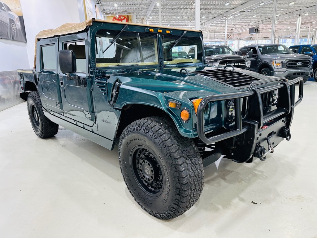 1996 HUMMER H1 6.5L V8 DIESEL 4-PASSENGER OPEN TOP 4X4 OFF-ROAD LEGEND6.5-liter V8 diesel engine190 horsepower and 385 lb-ft of torque4-speed automatic transmissionFull-time 4x4 drive systemOpen-top configuration with hard doorsHeavy-duty off-road suspension16-inch steel wheelsFully customizable interior with seating for 4Iconic military-style design with aggressive front grilleLimited edition with rugged, durable exteriorHeavy-duty bumpers and underbody skid plates for off-road protectionHigh ground clearance for maximum off-road capabilityFully functional winch for recovery operationsBasic radio with AM/FM capabilitiesSteel frame construction for optimal durabilityLarge, off-road tires for extreme terrain1996 HUMMER H1 MOTEUR DIESEL V8 6,5 L 4 PASSAGERS TOIT OUVERT 4X4Moteur diesel V8 de 6,5 litres190 chevaux et 385 lb-pi de coupleTransmission automatique a 4 vitessesSysteme de transmission integrale en permanence 4x4Configuration a toit ouvert avec portes rigidesSuspension robuste pour tout-terrainRoues en acier de 16 poucesInterieur personnalisable avec 4 siegesDesign iconique de style militaire avec grille avant agressiveEdition limitee avec exterieur resistant et durablePare-chocs renforces et plaques de protection sous le chassis pour la protection tout-terrainHaute garde au sol pour une capacite maximale en tout-terrainTreuil fonctionnel pour les operations de recuperationRadio de base avec fonctionnalites AM/FMConstruction en acier pour une durabilite optimalePneus tout-terrain de grande taille pour un terrain extreme Bienvenue chez Empire Auto, notre mission, vous faire gagner du temps au quotidien, obtenir des contacts introuvables, trouver une solution a un besoin urgent, mais surtout vous garantir le meilleur service accessible et personnalise. Venez rencontrer notre equipe passionnee. Laissez-nous vous offrir un service cle en main. Que ce soit pour notre Division Performance ou notre Division Camion & Commercial, une equipe specialisee vous accompagnera dans tous vos projets, et ce avec toutes les options de financement possible. Nous sommes soucieux de vous offrir le meilleur, cest pourquoi nous selectionnons soigneusement tous nos partenaires et nous revisitions regulierement letendue de leurs services, et ce pour vous faire decouvrir de nouvelles possibilites. De plus, votre temps est precieux, et nous vous delivrerons de contraintes pour vous laisser le meilleur. Nhesitez pas a communiquer avec nous, par telephone ou meme par visioconference nous serons a votre disposition pour repondre a tous vos questions et besoins, quelle que soit la nature de ceux-ci. TRANSACTIONS PERSONNALISEES ET ADAPTEES A VOS BESOINS PARTOUT AU CANADA & USA. FINANCEMENT & CREDIT BAIL DISPONIBLE L'ADMISSIBILITE ET LES CONDITIONS VARIENT SELON LE VEHICULE ET LE DOSSIER DE CREDIT CERTAINES MODALITES PEUVENT S'APPLIQUER 200 VEHICULES EN STOCK, OUVERT 6 JOURS/ 5 SOIRS VOICI NOTRE ADRESSE : 120, RUE DUBOIS SAINT-EUSTACHE, QC J7P 2W9