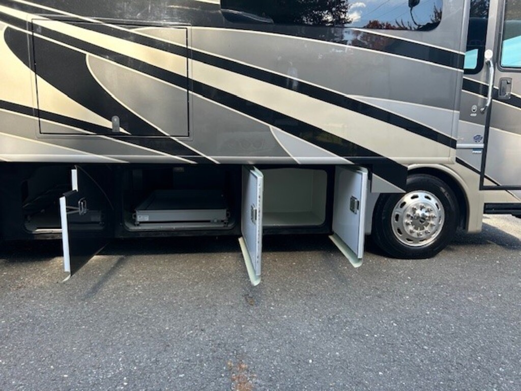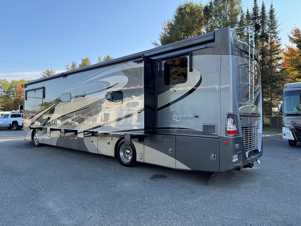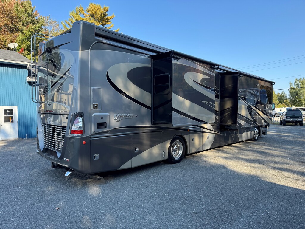 Fleetwood Discovery LXE 40D 2018, Chassis Freightliner XCM Series, Moteur Cummins ISL9 de 380HP, Transmission Allison 6 vitesses, 3 extensions, salle de bain complète à l'arrière avec salle d'eau à l'avant, 2 fournaises Atwood, Système chauffe-eau sans réserve, Système de chauffage dans la plancher Aqua-Hot 400D, Génératrice Onan Quiet Diesel 8,000W, 3 thermopompes A/C+ chauffage avec panneaux solaires, Convertisseur de courant 2800W, Réfrigérateur résidentiel 22pi/cu., Plaque chauffante à induction, Lave-vaisselle, Laveuse/sécheuse, Tiroir coulissant5 de 54" dans le premier coffre, Éclairage au DEL en dessous des coffres, Auvents de châssis, Auvent de type GIrard, Télévision extérieur et beaucoup plus!! Année : 2018 Mécanique : Cummins ISL9 380HP & 1150 ft-lb torque Châssis : Freightliner XCM Carburant : Diesel Transmission : Allison 3000MH 6 vitesses Motricité : 4X2 Longueur hors-tout(pieds) : 41.4 Largeur(pieds) : 102 Hauteur(pieds) : 12.9 Empattement(pouces) : 276 PNBV(Lbs) : 36,400 Réservoir essence(Gal.) : 100 Capacité eau fraîche(Gal.) : 100 Capacité eau grise(Gal.) : 75 Capacité eau noir(Gal.) : 50 Capacité réservoir propane(Lbs) : 164 Nombre d’extensions : 3 Capacité d’hébergement : 6 Pneus : Michelin 275/70R 22.5 (27e semaines de 2022) Air conditionné(BTU) : 3x 13,500 Chauffage(BTU) : 55,000 Chauffe-eau(Gal.) : Truma tankless