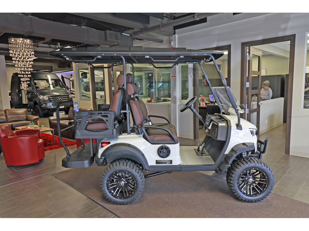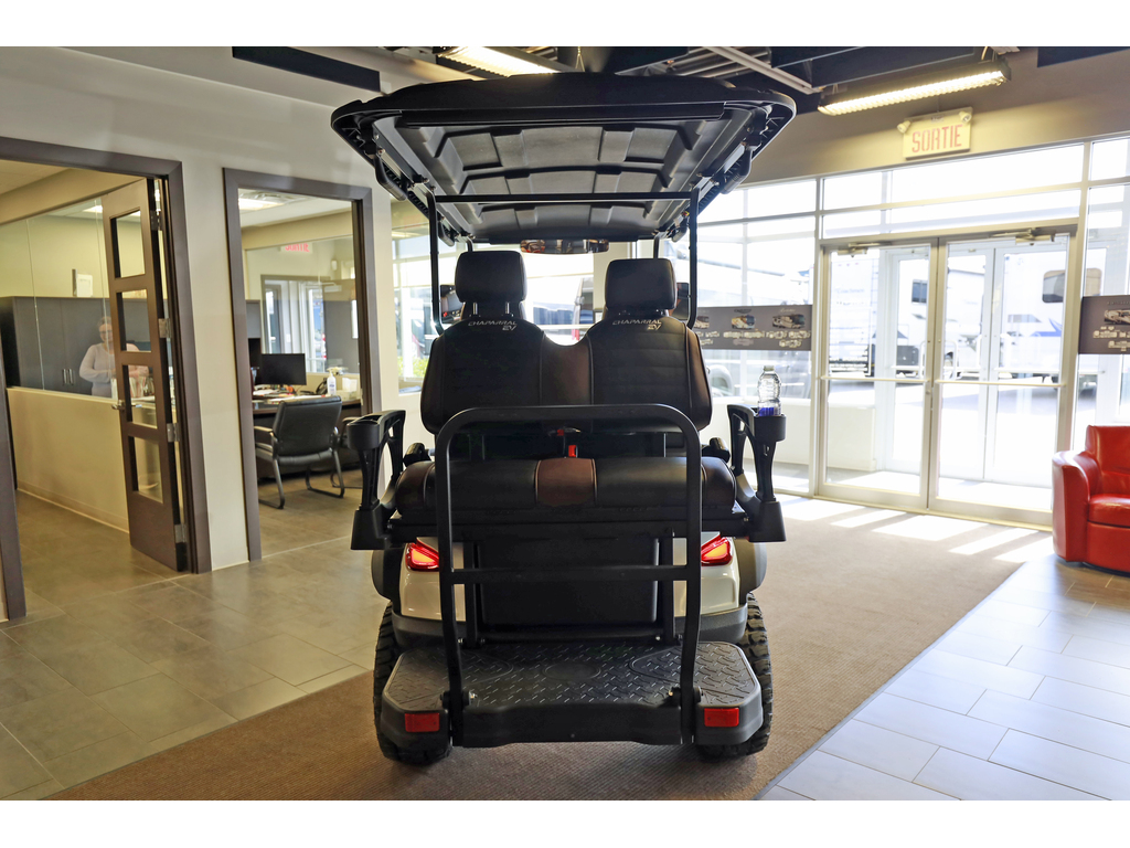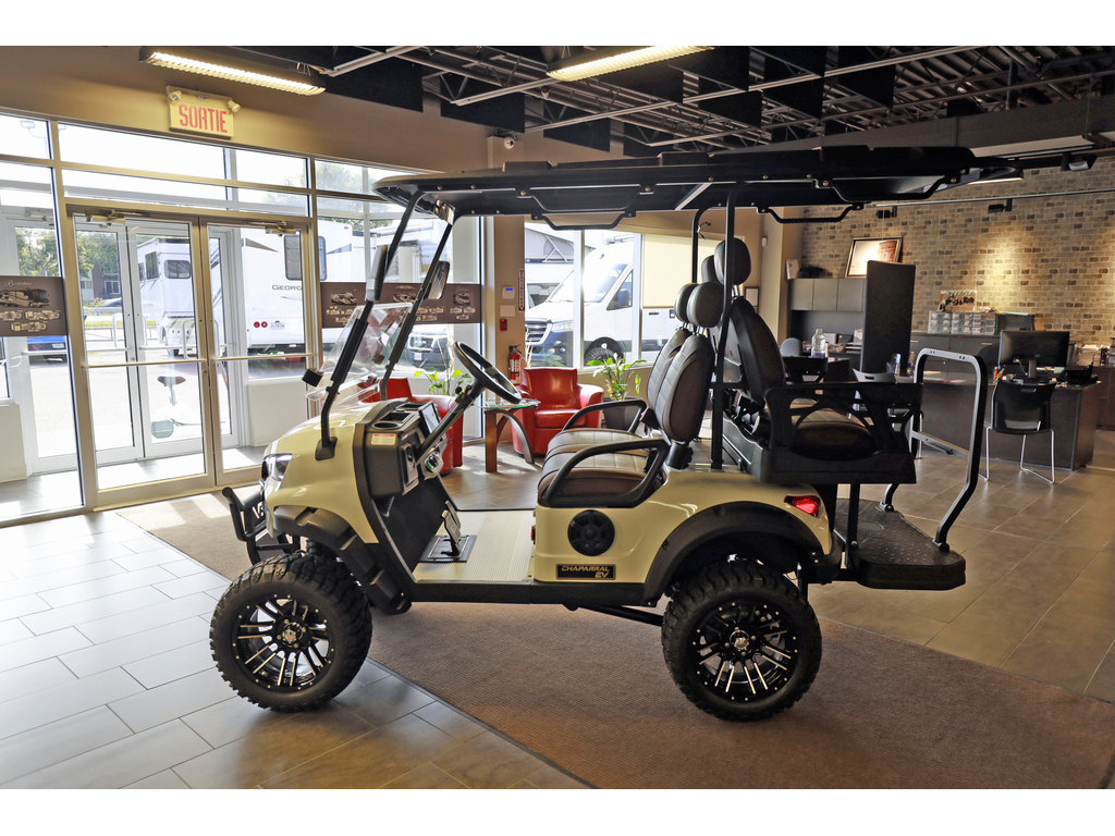 La Chaparral EV Matéo 4 est la voiturette idéale pour allier confort, style et performance. Équipée d’une batterie lithium-phosphate 48V longue autonomie, elle offre une puissance constante et une conduite silencieuse, parfaite pour vos parcours de golf ou vos déplacements privés. Avec ses 4 places spacieuses, son châssis robuste et sa suspension douce, elle assure stabilité et confort sur tout type de terrain. Son design moderne avec phares à DEL, caméra de recul, écran central tactile offrant la connectivité CarPlay, pare-brise protecteur et rangements pratiques en fait un modèle à la fois élégant et fonctionnel. Elle atteint une vitesse maximale d’environ 40 km/h et propose une autonomie moyenne d’environ 60km par charge. --------------------------------------------------------------------------------------------------------------------------------------------------------------------------------------- The Chaparral EV Matéo 4 is the ideal golf cart for combining comfort, style, and performance. Equipped with a long-range 48V lithium-phosphate battery, it offers consistent power and a quiet ride, perfect for your golf courses or private trips. With its four spacious seats, robust chassis, and smooth suspension, it ensures stability and comfort on all types of terrain. Its modern design with LED headlights, a rearview camera, a central touchscreen offering CarPlay connectivity, a protective windshield, and practical storage compartments makes it both stylish and functional. It reaches a top speed of approximately 40 km/h and offers an average range of approximately 60 km per charge.
