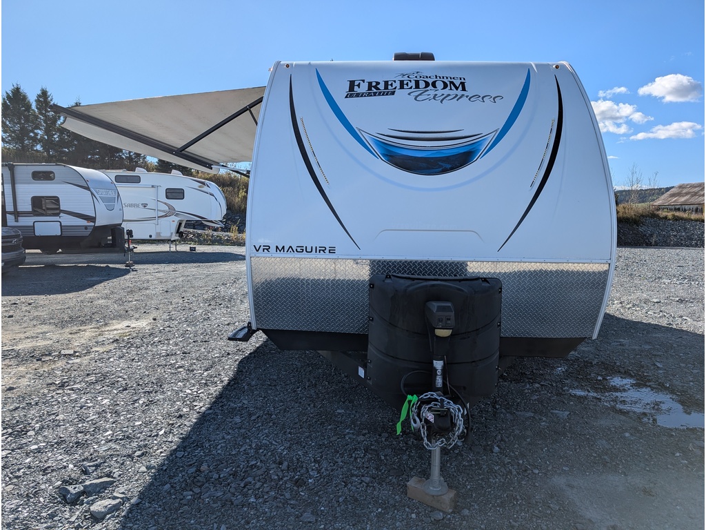 LA FREEDOM EXPRESS ULTRA LITE 287BHDS EST UNE CARAVANE DE VOYAGE LÉGÈRE FABRIQUÉE PAR COACHMEN, LONGUEUR HORS TOUT DE 32.92 PIEDS, POIDS DE 6342 LBS, PEUT ACCUEILLIR JUSQU'À 8 PERSONNES POUR COUCHER, POSSÈDE UNE CABINE DORTOIR AVEC DEUX LITS DOUBLES, UNE CHAMBRE FERMÉE AVEC UN LIT QUEEN, DINETTE BANQUETTE 72X44, RÉFRIGÉRATEUR AVEC CONGÉLATEUR AU PROPANE ET ÉLECTRIQUE, FOUR AVEC CUISINIÈRE À 3 BRÛLEURS, SOFA-LIT 64X41, 2 BONBONNES DE PROPANE, AUVENT ÉLECTRIQUE DE 18 PIEDS, AIR CLIMATISÉ, MUR EN AZDEL, RADIO, TÉLÉ, CUISINE EXTÉRIEURE ET PLUS ENCORE! TRÈS BELLE ROULOTTE AVEC BEAUCOUP DE RANGEMENT! ROULOTTE VENDU INSPECTÉE ET GARANTIE. PASSEZ NOUS VOIR AU 174 ROUTE DU PRÉSIDENT KENNEDY, BEAUCEVILLE, G5X 1P4, À SEULEMENT 40 MINUTES DES PONTS DE QUÉBEC. LIVRAISON DISPONIBLE PARTOUT AU QUÉBEC! PROFITEZ DE NOTRE FINANCEMENT FACILE ET RAPIDE. POUR PLUS D'INFOS, SANS FRAIS 1-888-799-0874, BUREAU 418-774-5066, CELL OU MESSAGE TEXTE KEVIN 418-386-0025 AU PLAISIR DE VOUS SERVIR ET À BIENTÔT! TOUJOURS LES MEILLEURS PRIX DU MARCHÉ