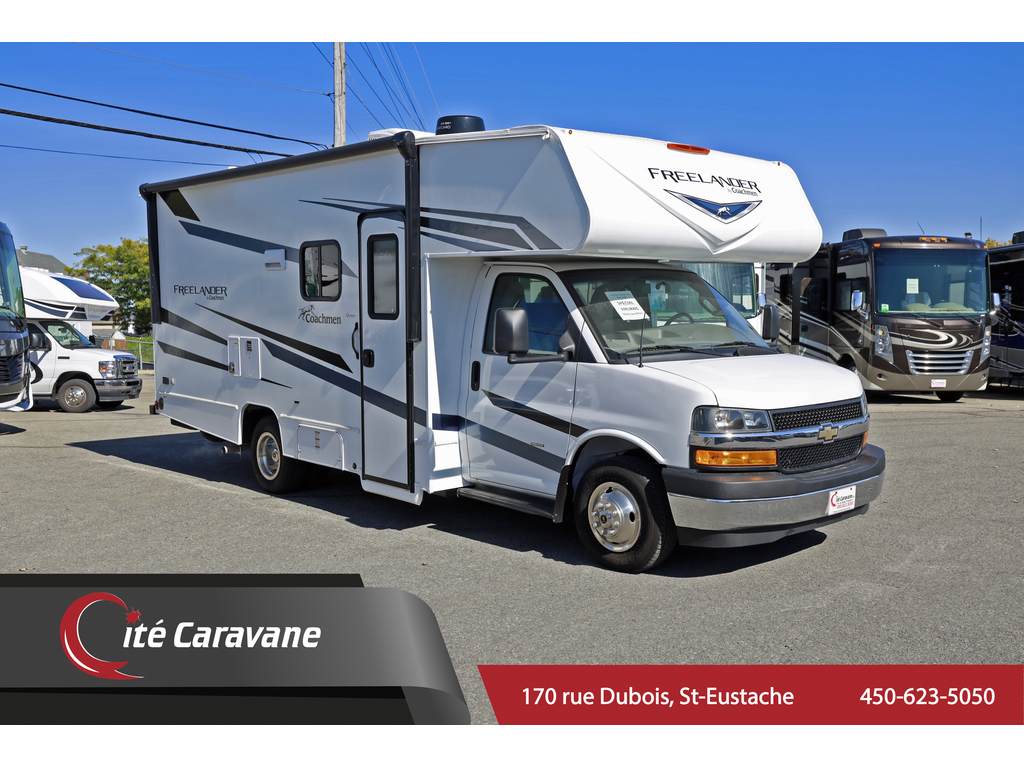 Classe C Coachmen Freelander 2020 22XG avec porte arrière CARGO !! TRES RARE SUR LE MARCHER !! WOW A VOIR !! Les options extérieurs sont les suivants, cap avant mouler en fibre de verre, génératrice 4000w, porte arrière accès au cargo gigantesque, hitch arrière 2’’ 5000lbs, camera de recul, 4 point d’ancrage à l’intérieur du VR, Lit queen, mécanique GM avec les 2 bancs pivotant, évier double, four avec 3 ronds, micro-onde, Unité d’air climatiser, système de chauffage central, très grand frigo et congélateur, belle grande douche et encore plus !! 952$/Mois+txs www.citecaravane.com 450-623-5050 170 RUE DUBOIS ST-EUSTACHE !!! Class C Coachmen Freelander 2020 22XG with rear Cargo door!! VERY RARE ON THE MARKET!! WOW TO SEE!! The exterior options are as follows, molded fiberglass front cap, 4000w generator, gigantic cargo access rear door, 2 '' 5000lbs rear hitch, backup camera, 4 anchor points inside the RV, Queen bed, GM mechanics with 2 swivel seats, double sink, oven with 3 burners, microwave, Air conditioning unit, central heating system, very large fridge and freezer, beautiful large shower and much more!! Available now. 952$/mois+txs www.citecaravane.com 450-623-5050 170 RUE DUBOIS ST-EUSTACHE !!!