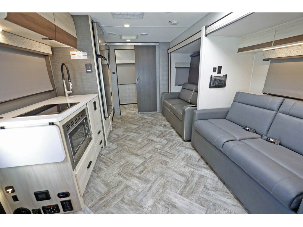 * disponible sur commande - available on order * Forest River Sunseeker 2440 2 extensions CLASSE C/B+ Skirt paint, Tissu : Stone, boiseries : Vermont ...