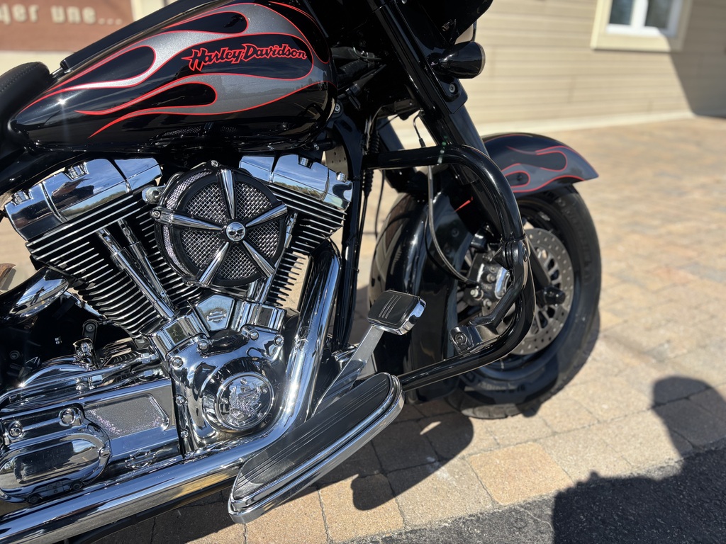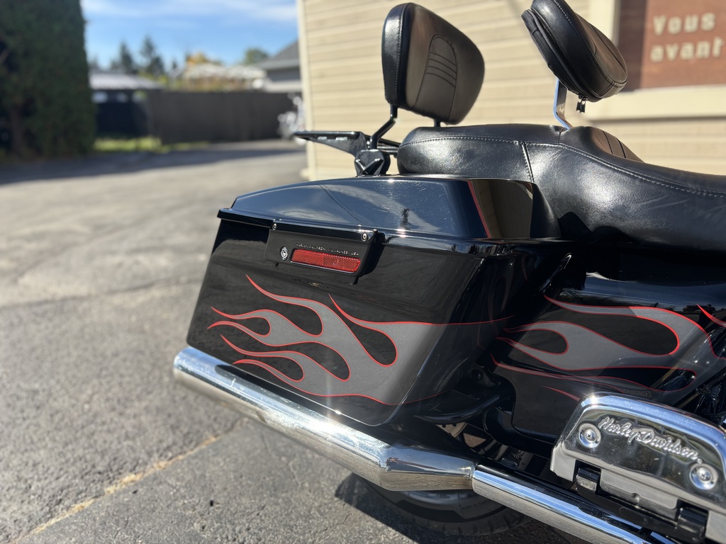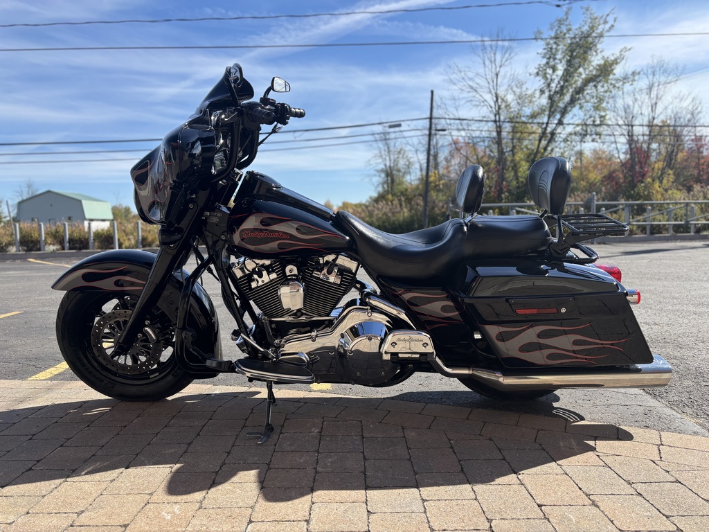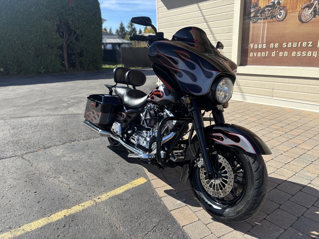 magnifique street glide 2006 avec seulement 123579 km (77237 mi et le conteur vas êtres remplacer pour un km a a la ventes ) cam services fait ,stage 1 complet avec header v/h et silencieux s&s , peinture custom , dossier passager avec porte bagage détachable , dossier conducteur , ape 14 pouces , roue et fourche noir a voir et le financement est disponible ! moto avec mention reconstruit