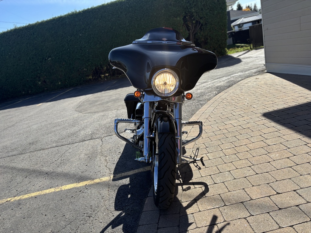 magnifique street glide 2008 avec seulement 65900km (41188 mi le cadran peu être remplacer a la vente pour un km/h ) moteur 96 pc 6 vitesse , suspension a air ajustable , réservoir et aile rallonger , roue av 21 et les deux sont chromer ainsi que les fourche et contrôle , stage 1 complet , crash bar avec repose pied incorporer , Cruise contrôle , pneu et frein neuf , a voir tout un look et le financement est disponible .