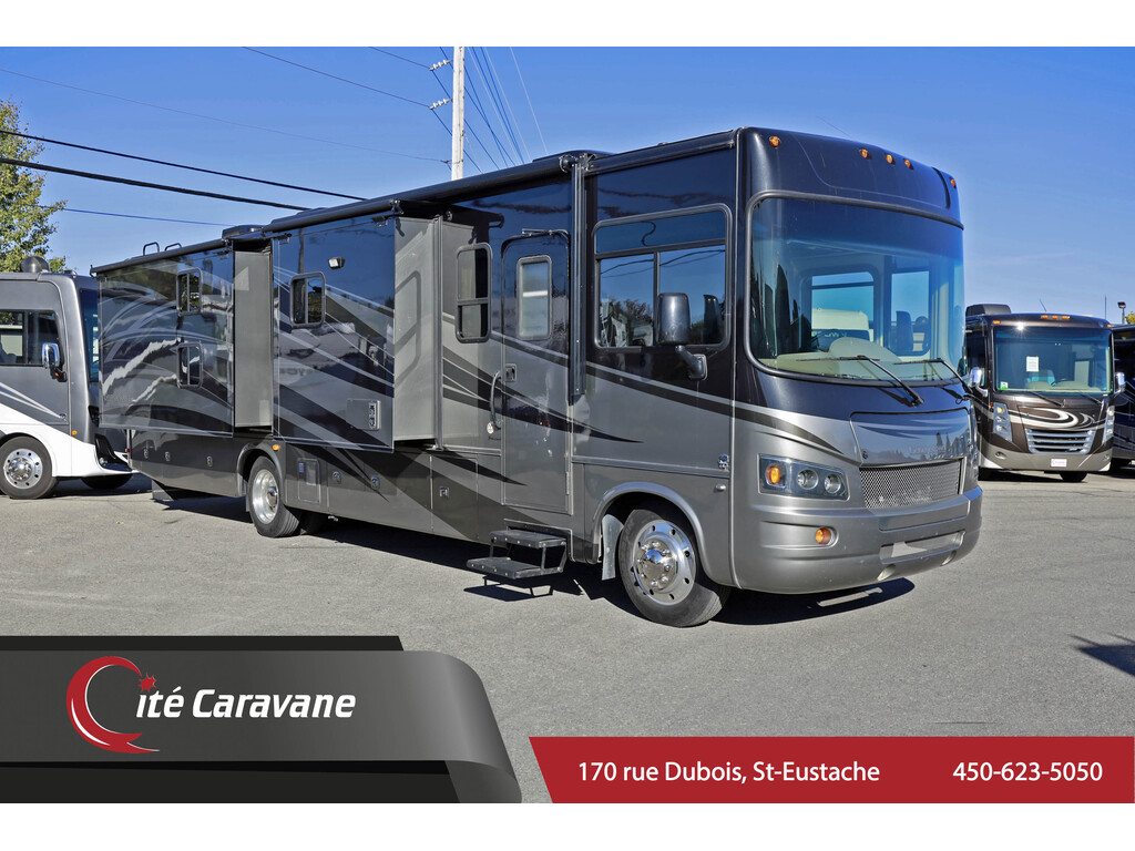 Prix régulier 79,900$ ! SPECIAL 55,900$ Georgetown 352QS 2012, vendu tel quel. L’air climatisé du moteur de refroidit pas, voyant ABS allumé au tableau de bord, pneus datent de 2017, infiltration d’eau au toit et murs, la génératrice a besoin d’ajustements. Ce motorisé classe A est construit sur un châssis Ford F53 avec roues 22,5 pouces et équipé du moteur Ford Triton V10 de 6,8 litres. Ce modèle avec quatre extensions et une longueur d’environ 36 pieds, offre un intérieur spacieux et confortable, idéal pour voyager en tout confort. Son extérieur full paint et ses coffres full basement vont vous permettre d’apporter tout ce dont vous avez besoin lors de votre prochaine aventure. L’équipement complet de ce motorisé comprend une génératrice 5500w Onan, réfrigérateur, four au propane, A/C au toit, jacks hydrauliques, ballons de suspension avec compresseur et bien plus! Georgetown 352QS 2012, sold as is. The engine air conditioning is not cooling, ABS light on the dashboard, tires are from 2017, water infiltration in the roof and walls, the generator needs adjustments. This motorhome is built on a Ford F53 chassis with 22.5-inch wheels and equipped with the 6.8-liter Ford Triton V10 engine. This model with four extensions and a length of approximately 36 feet, offers a spacious and comfortable interior, ideal for traveling in comfort. Its full paint exterior and full basement trunks will allow you to bring everything you need on your next adventure. The complete equipment of this motorhome includes a 5500w Onan generator, refrigerator, propane oven, roof A/C, hydraulic jacks, suspension balls with compressor and much more!
