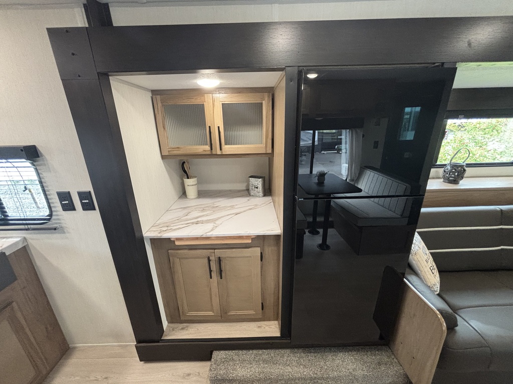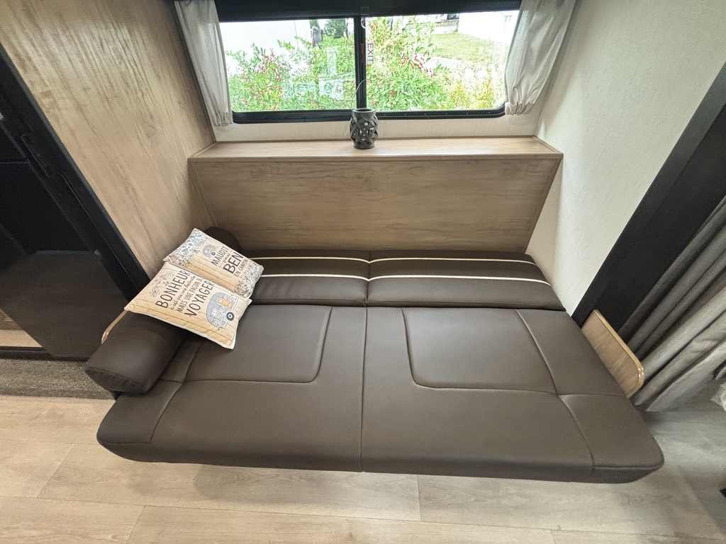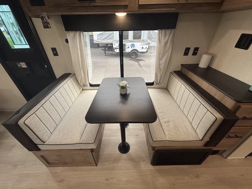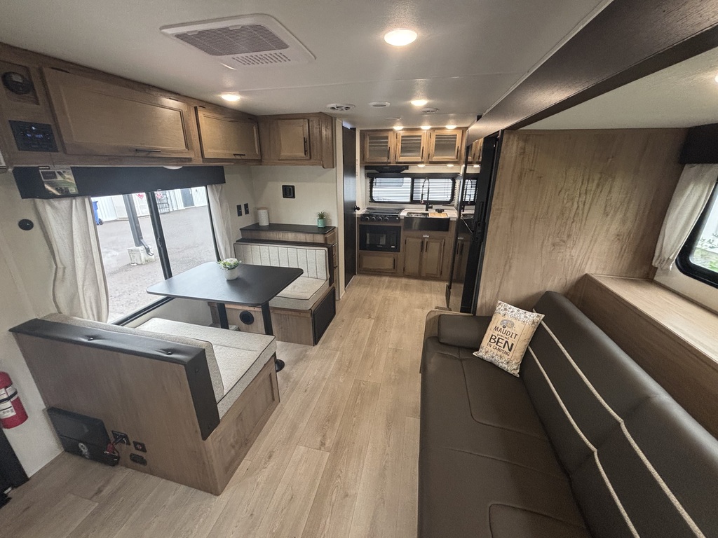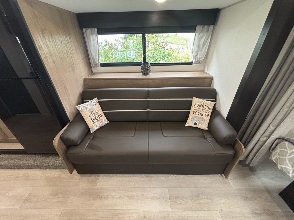 Grey Wolf 22CE 2026 Roulotte idéale pour un couple. La chambre avant comporte un lit queen et un garde-robe de chaque côté du lit qui se referme avec un rideau pour plus d'intimité. La cuisine arrière est munie d'un grand évier profond, une cuisinière avec dessus vitré, sans oublier le réfrigérateur et l'espace comptoir et rangement juste à côté. Il y a une banquette ainsi qu'un sofa qui se transforment en lits pour des invités supplémentaires. Vous trouverez une très grande fenestration. La salle de bain est composée d'une douche, vanité et pharmacie. Cette roulotte est aussi très bien équipée pour profiter de l'extérieur avec son auvent électrique avec lumières led et ses haut-parleurs extérieurs. Elle est dotée de marches ultra-robustes et vérin avant électrique. Il y a beaucoup de rangement extérieur. Financement facile sur place. *Photos à titre indicatif*