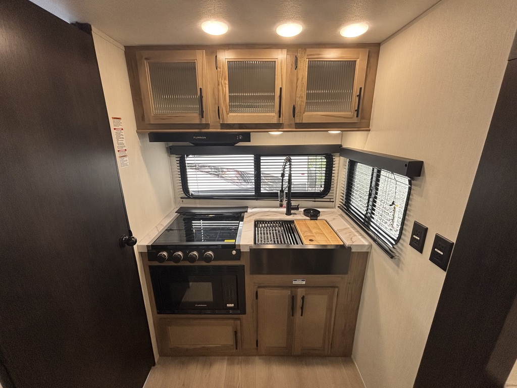 ALPHA WOLF 17MKE 2025 ROULOTTE POUR COUPLE AVEC UN POIDS DE 4800 LIVRES INTÉRIEUR: - Cuisine avec grand évier, cuisinière avec dessus vitré, micro...