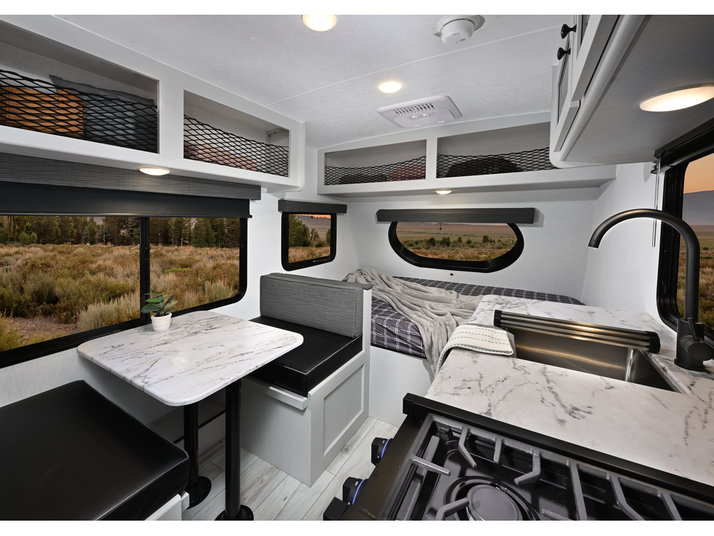 Murs Azdel, pneus Goodyear, chauffe eau sur demande Fogatti, panneau solaire 200 watts, heat pads 12v pour réservoirs eaux grises, noires et fraîche, haut parleur bluetooth, contrôleur de charge 30amp. détecteur de pression dans les pneus.