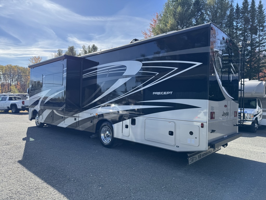 Jayco Precept 34G 2022, Chassis Ford F53, Suspension JRide Plus, Roues aluminium Alcoa 22.5 pouces, Génératrice Onan 5 500W avec démarrage programmable, Onduleur de 1 000W, Panneau solaire 190W avec contrôleur de charge, 2 thermopompes, Thermopompe avant détient le mode chauffage, Grand comptoir de cuisine en Corian, Caméras à angles morts et de recul, Jack hydraulique automatique, Auvent électrique de 23 pieds avec DEL intégré, 2 sofa style cinéma électrique, Téléviseur 50 pouces rabattable dans le mur, Lumières aux DEL accent, Foyer électrique, Table à manger en banquette, Réfrigérateur résidentiel avec machine à glace, Poêle et four au propane, Chauffe-eau instantanné, Combo laveuse/sécheuse, Douche 30X36 pouces, Téléviseur extérieur avec système audio, Grand garde-robe double dans la chambre arrière et beaucoup plus!!! Année : 2022 Mécanique : Ford 7.3L V8 Châssis : Ford F53 Carburant : Essence Transmission : TorqShift 6 vitesses Motricité : 4X2 Longueur hors-tout(pieds) : 36.5 Largeur(pieds) : 8.4 Hauteur(pieds) : 12.9 Empattement(pouces) : 238 PNBV(Lbs) : 22,000 Réservoir essence(Gal.) : 80 Capacité eau fraîche(Gal.) : 72 Capacité eau grise(Gal.) : 40 Capacité eau noir(Gal.) : 50 Capacité réservoir propane(Lbs) : 56 Nombre d’extensions : 2 Capacité d’hébergement : 5 Pneus : Michelin 235/80R 22.5 Air conditionné(BTU) : 15,000 + 13,500 Chauffage(BTU) : 35,000 Capacité chauffe-eau(Gal.) : Instantanné
