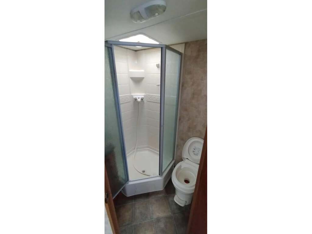 Options : Climatiseur au plafond, Douche, Toilette, Lit queen-size, Détecteur LPG/CO2, Téléviseur, Chaine stéréo, Antenne pour téléviseur, Micro-onde, Cuisinière, Four, Auvent, Chauffe-eau, Lecteur DVD