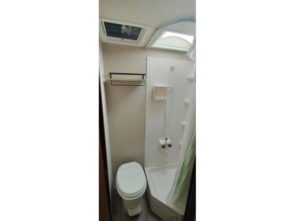 Options : Vérin stabilisateur, Douche extérieure, Douche, Lit double, Cuisinière, Auvent, Chauffe-eau, Couchette