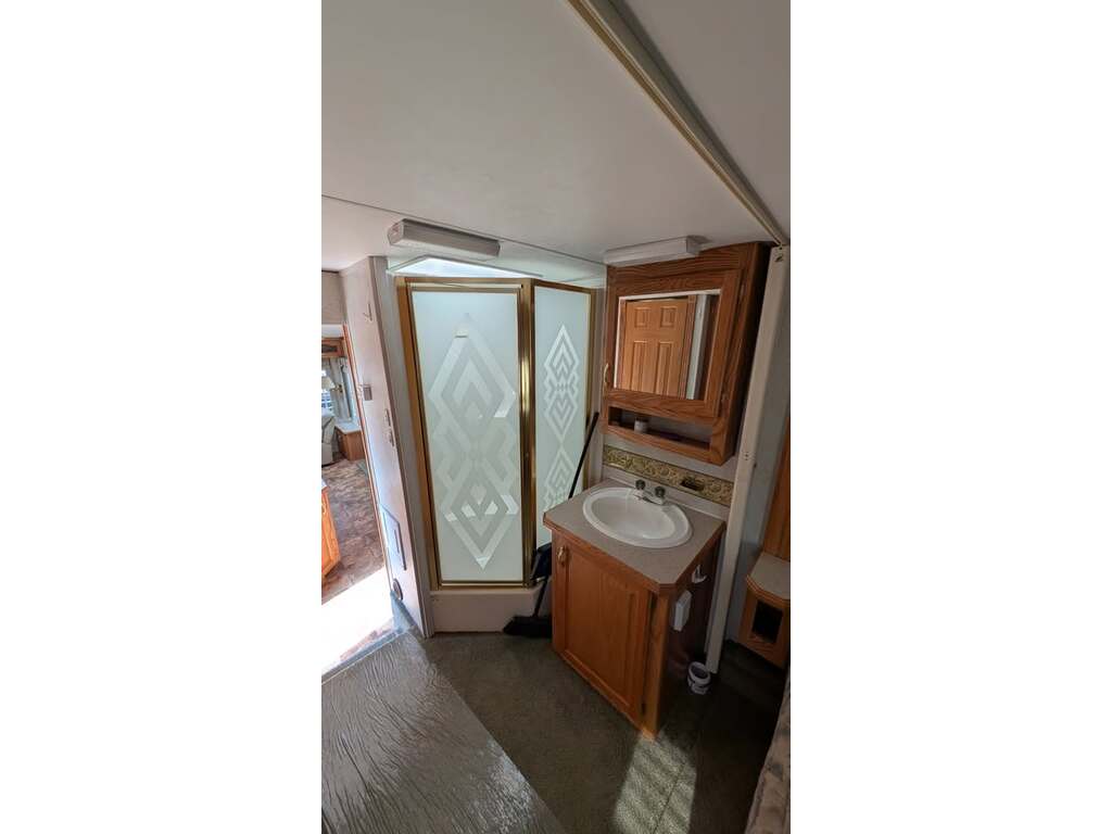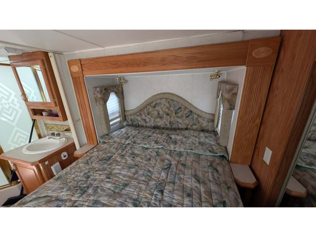 Options : Réservoir de propane, Lucarne, Douche, Toilette, Lit queen-size, Détecteur LPG/CO2, Téléviseur, Chaine stéréo, Micro-onde, Cuisinière, Four, Auvent, Chauffe-eau