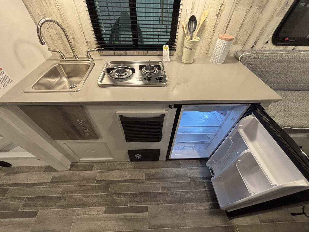 TRAVEL LITE ROVE LITE 14FBC 2026 ROULOTTE POUR COUPLE ULTRA LÉGÈRE AVEC UN POIDS DE 1900 LIVRES INTÉRIEUR: - Cuisine avec évier, 2 ronds de poêle et réfrigérateur - Petit comptoir avec rangement pour la poubelle - Grande banquette qui se transforme en lit - Grande salle de bain arrière avec douche et rangement EXTÉRIEUR: - Auvent électrique - Coffres de rangement photos à titr eindicatif