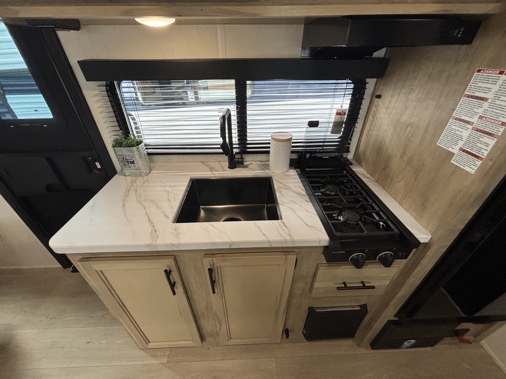 ALPHA WOLF 17MKE 2025 ROULOTTE POUR COUPLE AVEC UN POIDS DE 4800 LIVRES INTÉRIEUR: - Cuisine avec grand évier, cuisinière avec dessus vitré, micro...