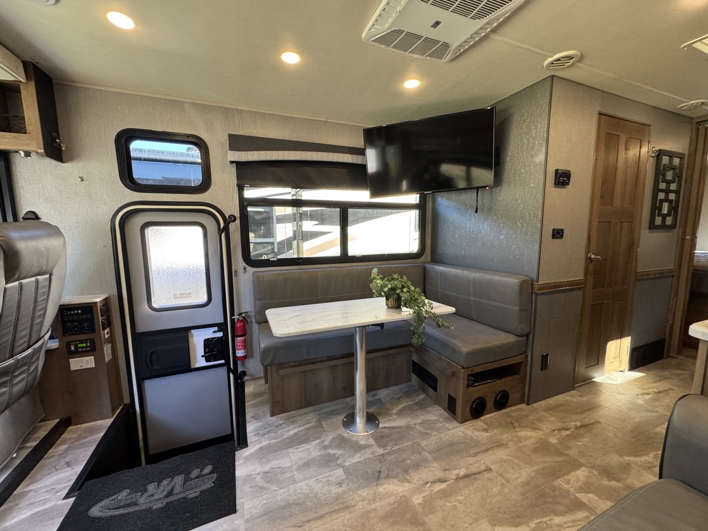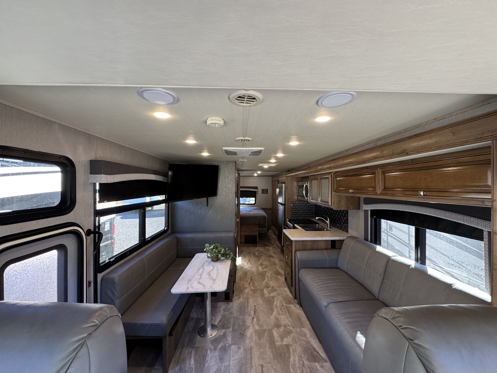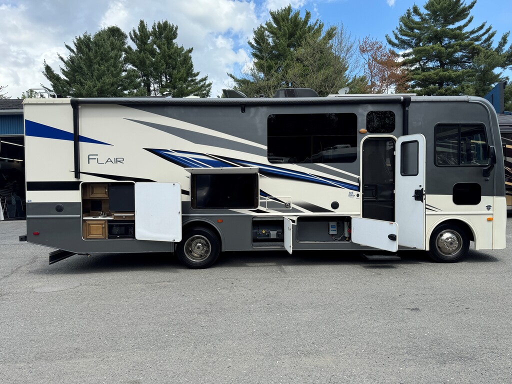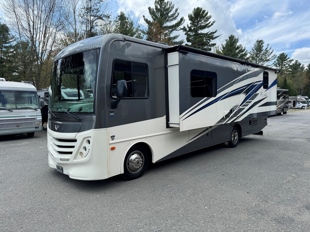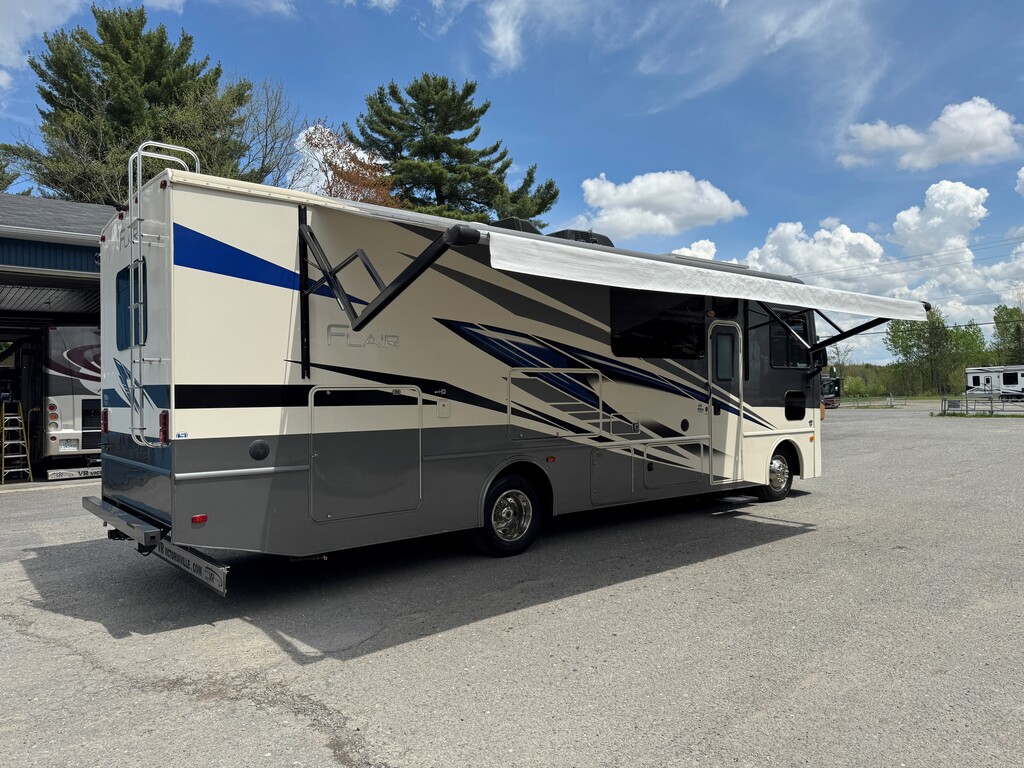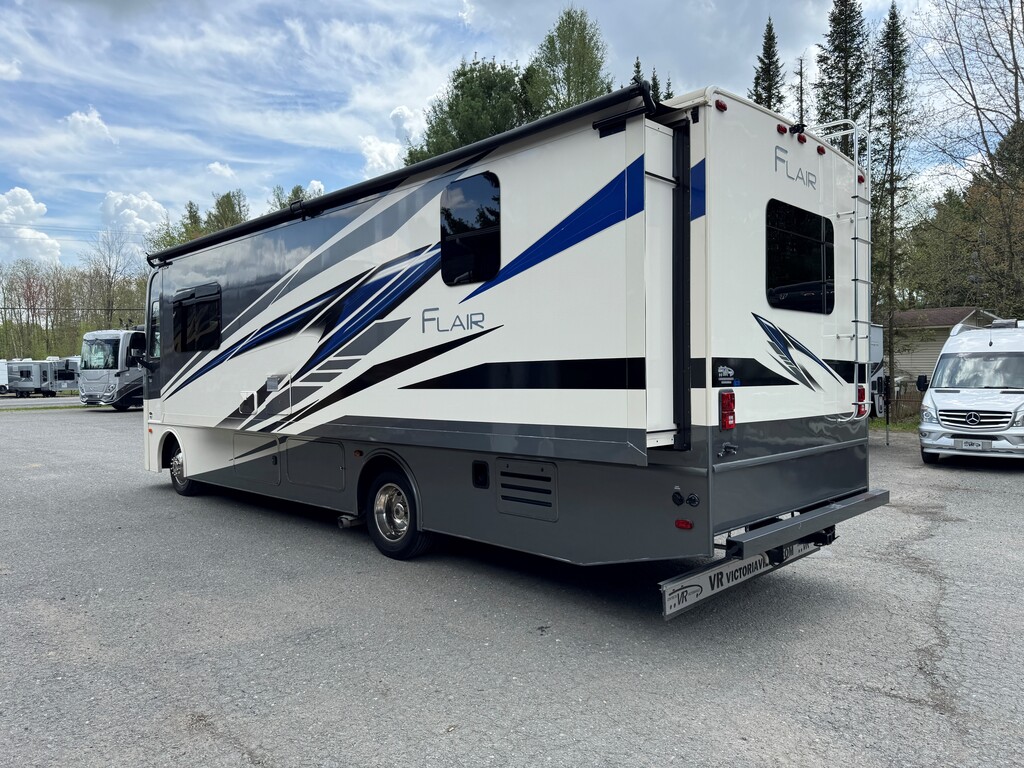 Fleetwood Flair 29M 2021, Mécanique Ford V8 7.3L, Cuisinette extérieur, Grande cuisine intérieur complète avec poêle et four au propane Dometic, Beaucoup de rangements, Réfrigérateur électrique résidentiel, Onduleur de 1000W, Panneau solaire 300W avec controleur de charge, Chambre arrière avec lit king, Lit avant rabbatable, Auvent électrique, Système caméras à angles morts, Téléviseur extérieur avec système audio, Système de son intérieur bluetooth, Jack stabilisateur hydraulique avec commande électronique automatique et beaucoup plus. Une visite vous convaincra! Année : 2021 Mécanique : Ford V8 7.3L Châssis : Ford F53 Carburant : Essence Transmission : TorqShift 6 vitesses automatique Motricité : 4X2 Longueur hors-tout(pieds) : 31 Largeur(pieds) : 8.3 Hauteur(pieds) : 12.3 Empattement(pouces) : 190 PNBV(Lbs) : 18,000 Réservoir essence(Gal.) : 80 Capacité eau fraîche(Gal.) : 50 Capacité eau grise(Gal.) : 37 Capacité eau noir(Gal.) : 37 Capacité réservoir propane(Lbs) : 59 Nombre d’extensions : 1 Capacité d’hébergement : 8 Pneus : 245/70R 19.5G Air conditionné(BTU) : 15,000 Chauffage(BTU) : 30,000 Consulter la brochure du manufacturier en cliquant ici