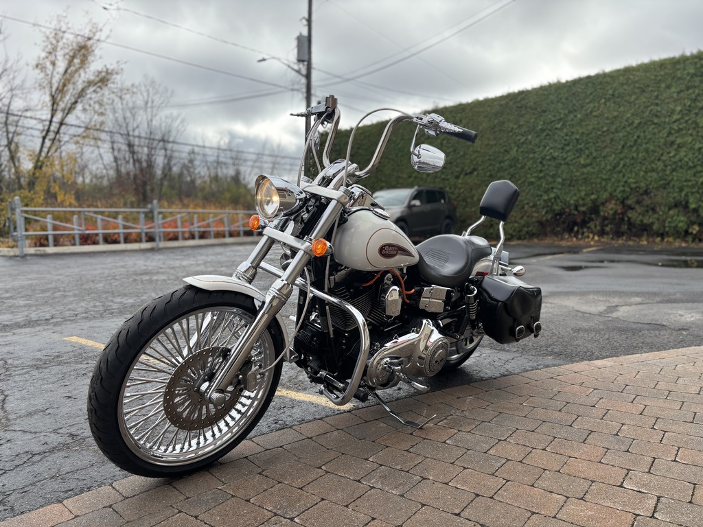 magnifique dyna low rider 2008 avec seulement 78042 km , stage 1 complet avec entre d air screaming eagle , roue av 21 x3.25 , fourche contrôle et swingharm chromer , mini plate forme et repose pied avant , mini ape , alarme Harley , crash bar , dossier passager et valise détachable a voir et le financement est disponible !