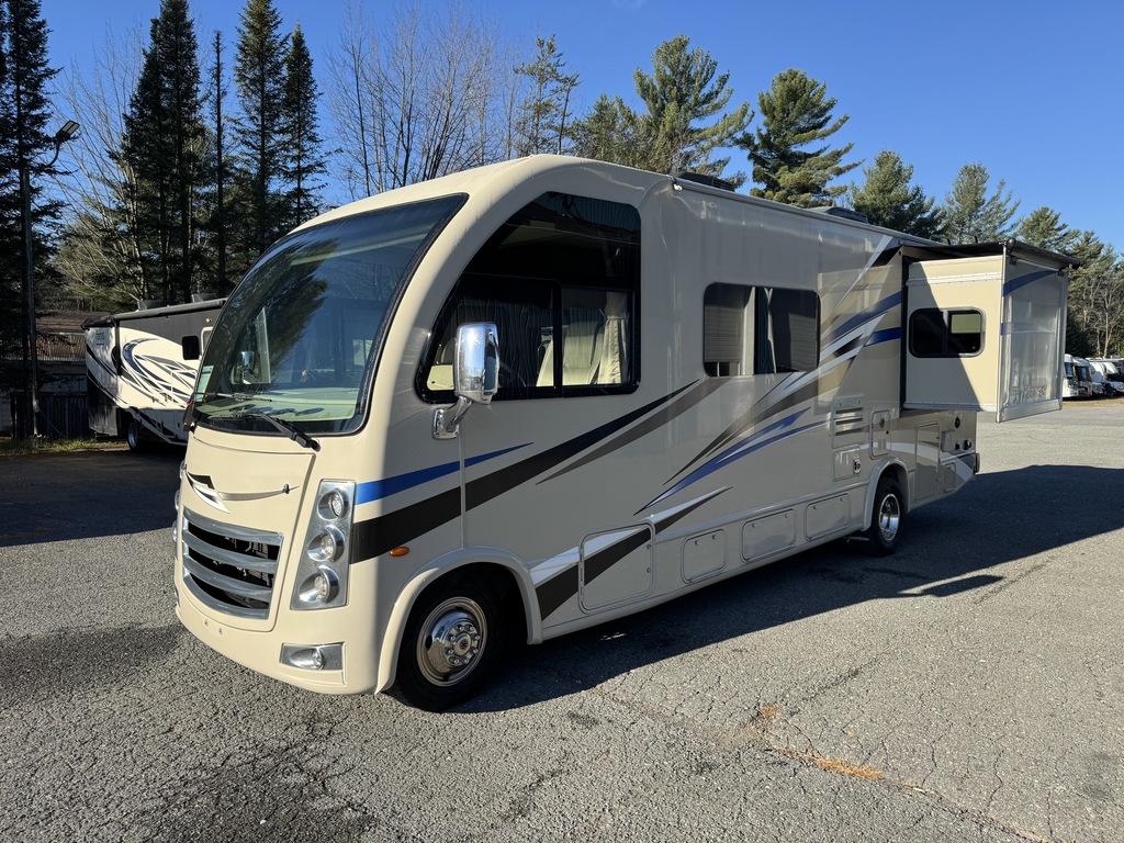 Thor Vegas 25.3 2018, Mécanique Ford Triton V10, Génératrice Onan 4 000W, Lit rabattable au dessus du conducteur, Auvent électrique de 18 pieds, Réfrigérateur au propane, Téléviseur extérieur avec système audio, Table en banquette, Lit queen à l'arrière, Chauffe-eau instantanné, Poêle 2 ronds au propane, Micro-ondes à convection, Lumières accents et beaucoup plus!! Année : 2018 Mécanique : Ford 6.8L Triton V10/ 305HP, 420 lb-pi torque Châssis : Ford E-Series Carburant : Essence Transmission : Torqshift 6 vitesses avec overdrive Motricité : 4X2 Longueur hors-tout(pieds) : 26.5 Largeur(pieds) : 7.8 Hauteur(pieds) : 11.4 Empattement(pouces) : 188 PNBV(Lbs) : 14,500 Réservoir essence(Gal.) : 55 Capacité eau fraîche(Gal.) : 50 Capacité eau grise(Gal.) : 30 Capacité eau noir(Gal.) : 41 Capacité réservoir propane(Lbs) : 40.9 Nombre d’extensions : 1 Capacité d’hébergement : 4 Pneus : 225/75R 16 Air conditionné(BTU) : 15,000 Chauffage(BTU) : 30,000 Capacité chauffe-eau(Gal.) : Instantanné