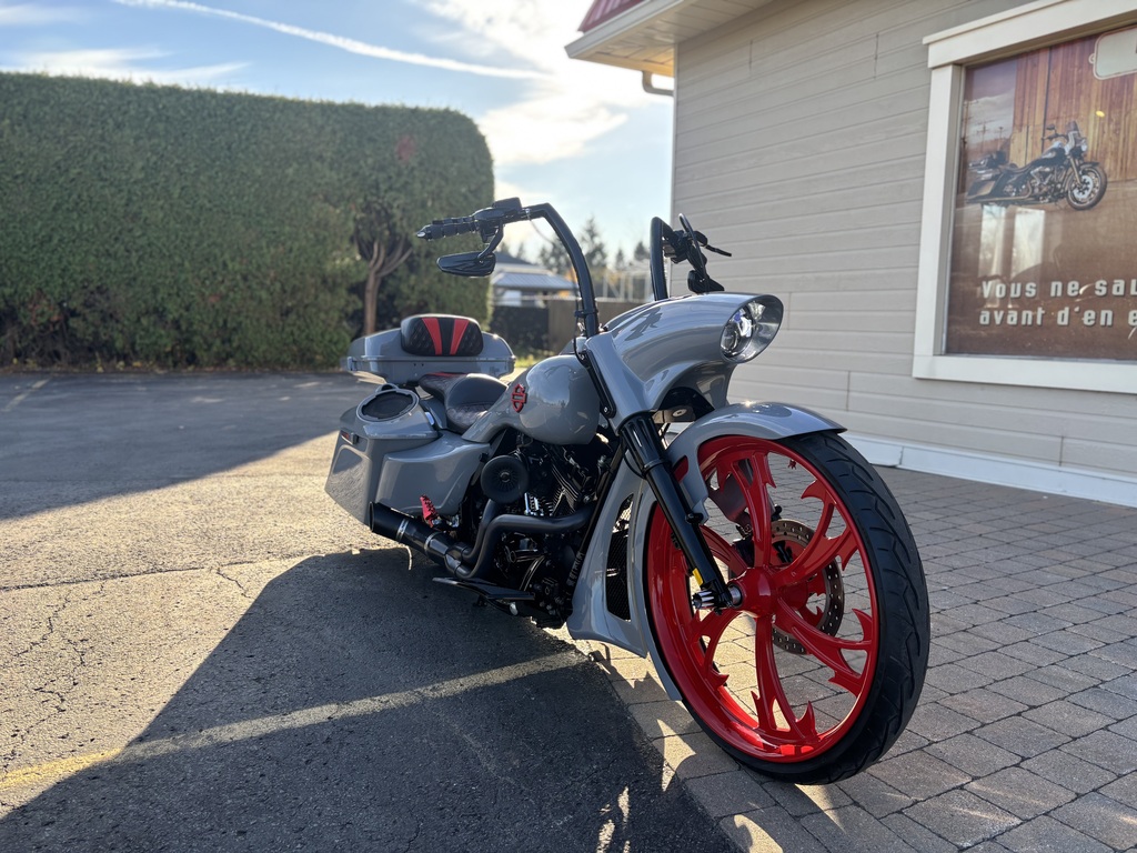 magnifique road king 2013 (flhr) avec seulement 55816 km ,moto custom au complet et tout un look , moteur 103 pc 6 vitesse, stage 1 complet avec exhaus python 2/1 et entre d air arlen ness , roue av 26 pouces et deux mag agencer , ape 14 pouces , audio bluetooth , suspension active concept & design ( mode automatique ou manuel ) top case détachable , béquille central Electrique, plateform et commande custom , a voir tout une moto et le financement est disponible !!