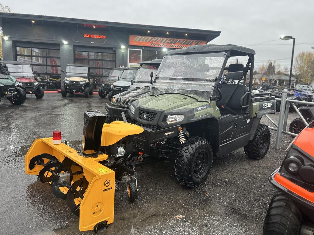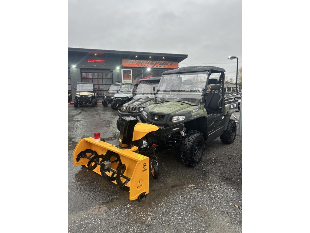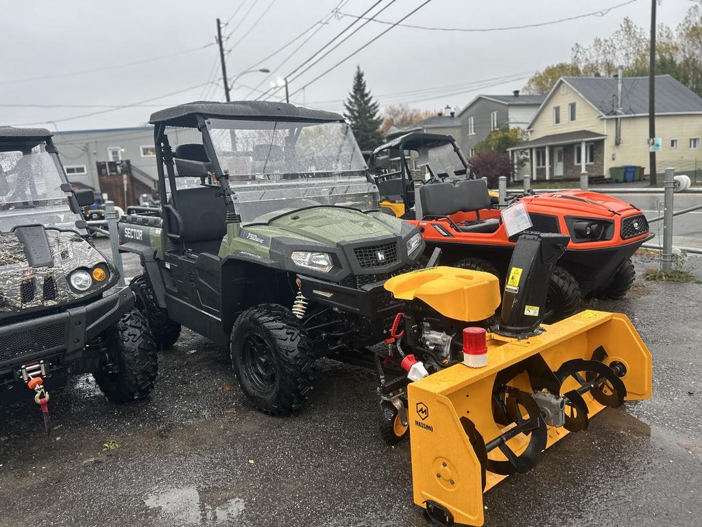 Découvrez le Hisun SECTOR 750 2022 et la souffleuse! Ce véhicule utilitaire 4x4 robuste, d'un vert éclatant, est parfait pour toute aventure. Avec un moteur puissant de 735 CC et une transmission automatique, il offre une conduite fluide pour deux passagers. $14 495 + taxes + $995 frais de transport et préparations, ou financer le sur 120 mois, 7.99%, $50.01 par semaine.