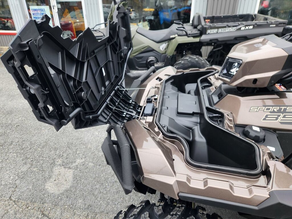 ??CARACTÉRISTIQUES DE SÉRIE DU 850 : Traction intégrale sur demande Débattement de suspension anti-roulis avant de 22,9 cm (9 po) et arrière de 26 cm (10,25 po) Capacité de remorquage de 680 kg (1 500 lb) Capacité de charge avant et arrière de 163 kg (360 lb) Stockage scellé combiné de 6 gallons ??LA GARNITURE TRAIL COMPREND : Feux et rampe de phares à DEL Pneus Pro Armor X-Terrain de 68,5 cm (27 po) et jantes en aluminium de 35,5 cm (14 po) Double bras triangulaire arqué avec grand débattement Pare-chocs avant et arrière Ultimate Series Treuil de 1 588 kg (3 500 lb) avec câble synthétique Siège coupé et cousu haut de gamme Plastiques et ressorts peints Direction assistée électronique (DAE) multi-sélection Système de freinage du moteur standard (EBS) Contrôle actif de la descente (ADC) Au plaisir de vous servir? Richard Brousseau Vente en ligne sans frais ?? 1-866-983-3212 4?? 1??8??3??8??3??3??2??1??2?? Poste 1??2??2??7??pour Richard ou 1??2??2??5?? pour Éric ??texto=418-625-0597 www.mbrousseau.com e-mail= mbrousseau@sogetel.net Concessionnaire Polaris ????? Dépositaire des marques : Polaris, Suzuki, Stihl, troy-bilt, cub cadet,Oregon, Woody, Klim, Camso, Commander, Kimpex, Motovan, BSL, Parts Canada, Gamma . Mots Clés : VTT, Côte à Côte, Moto, Scooter, Cyclomoteur, Motoneige , Polaris , Suzuki , KLIM , Cub Cadet ,Troy Bilt  Données et prix sujets à changement sans préavis.