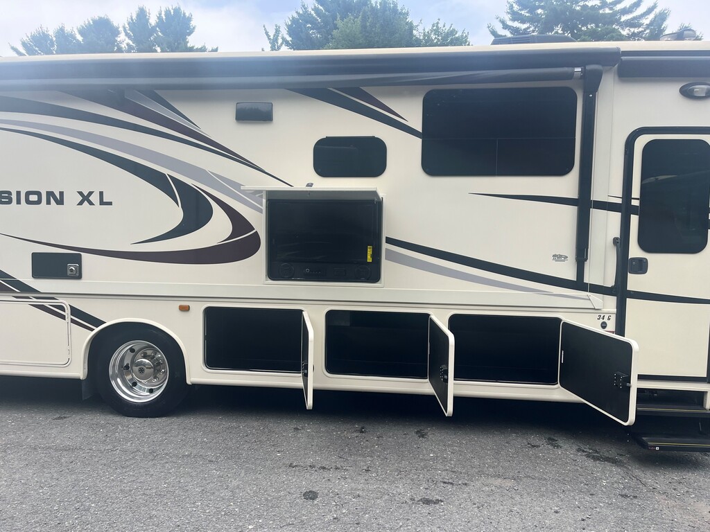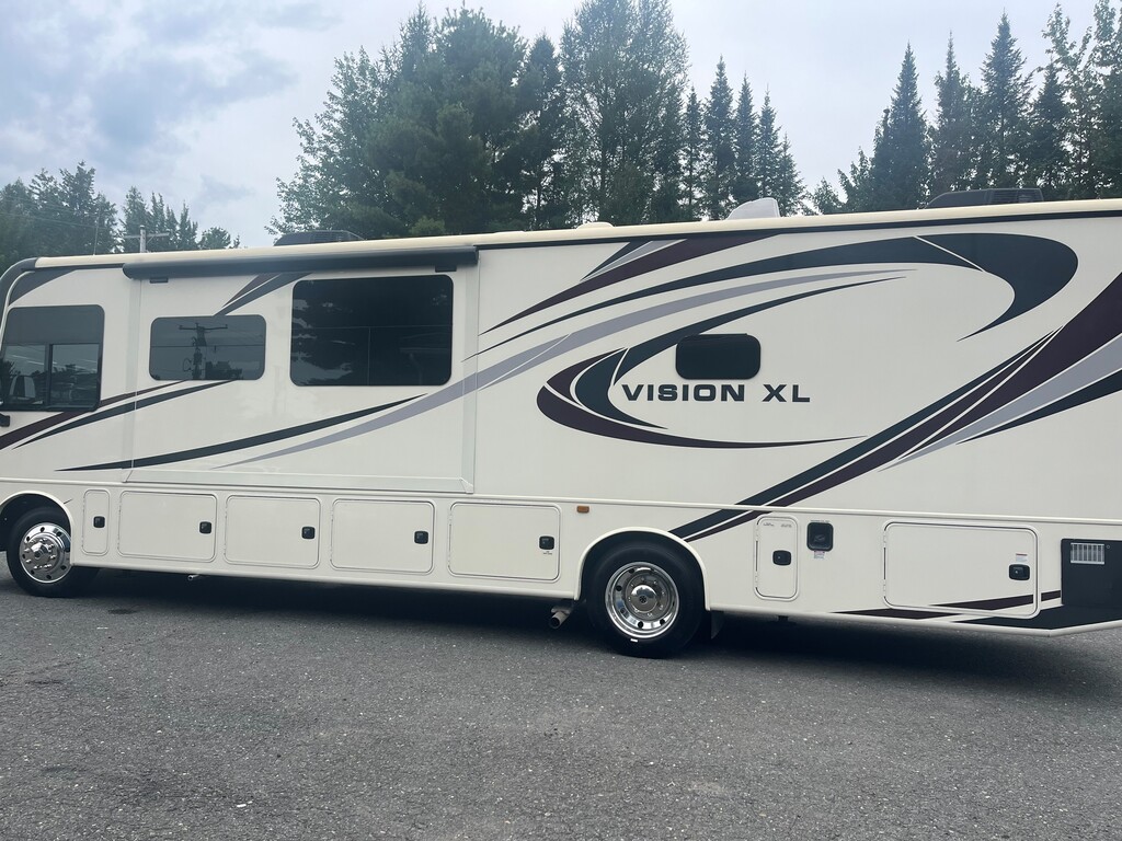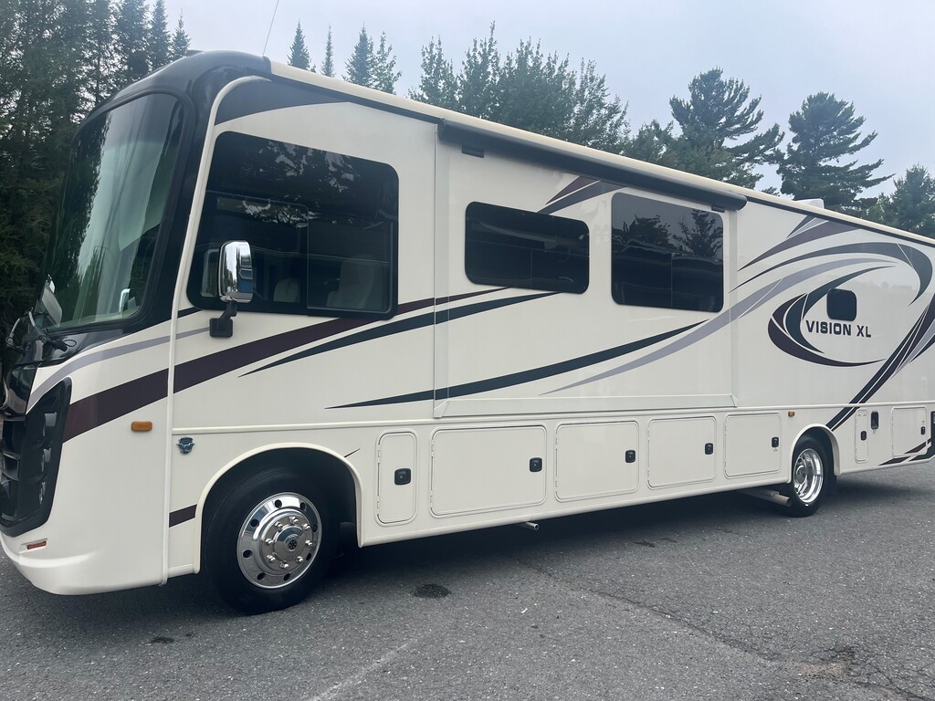 ENTEGRA VISION XL 34G 2020 moteur 6.8 ford chassis 22000 lbs pneus 22.5 génératrice onan 5500 beaucoup de rangement exterieur ,interiur deluxe avec divant et causeuse ,table avec banquette ,grand frigidaire poele micro onde convection ,beau comptoir grande chambre arrière TRES BEAU MOTORISÉ A VOIR
