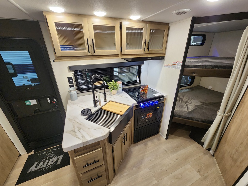 GREY WOLF 25RR BLACK LABEL 2026. Roulotte cargo avec un poids de 5300 livres INTÉRIEUR: - Cuisine avec comptoir robuste, évier double, cuisinière 3...