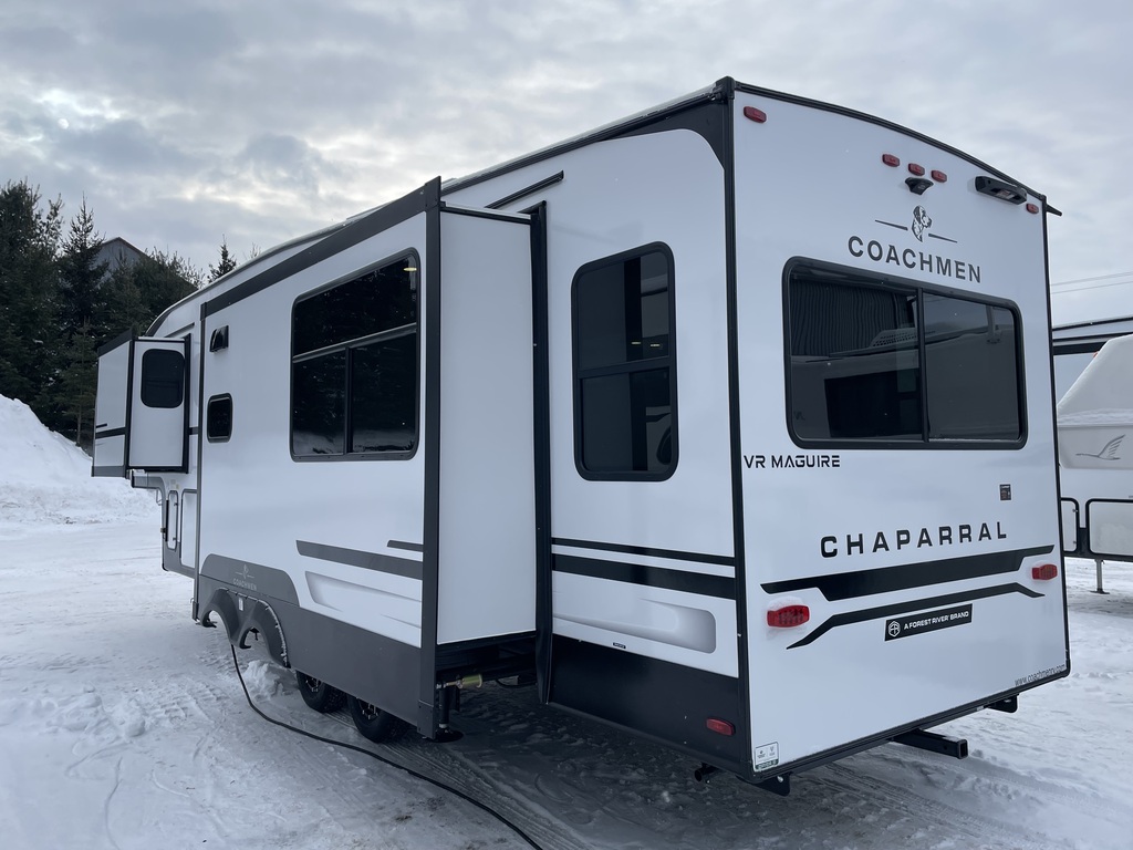 AVEC JACK AUTO NIVELANTS !! CHAPARRAL 298 RLS 2026, 3 EXTENSIONS, POIDS DE SEULEMENT 9864 LBS, LONGUEUR DE PLANCHER DE 29.8 PIEDS, LONGUEUR HORS TOUT DE 34'8'', GRANDE AUVENT ÉLECTRIQUE, PANNEAU SOLAIRE, ÉCHELLE ARRIÈRE, CUISINE EXTÉRIEUR, POUVANT RECEVOIR JUSQU'À 4 PERSONNES POUR COUCHER, INTÉRIEUR TRÈS SPACIEUX ET LUXUEUX, GRANDE CUISINE, ILÔT CENTRALE, TRÈS GRAND GARDE MANGER, FOYER DE LUXE, TV, BAR DE SON, TABLE AVEC 4 CHAISES, DIVAN/FAUTEUILS DOUBLES, 2IÈM DIVAN/FAUTEUIL TRIPLE DE 70X67, CHAMBRE DES MAÎTRES À L'AVANT AVEC GRAND LIT DE 80'' X 60'', ESPACES DE RANGEMENT RENDANT L'HABITACLE TRÈS FONCTIONNEL TOUT EN GARDANT LES COMMODITÉS SUIVANTES, GRAND FRIGO FONCTIONNANT AU 12 VOLTS, FOUR/POÊLE À 3 BRÛLEURS AVEC HOTTE, MICRO-ONDES, AIR CLIMATISÉ, CHAUFFAGE, CHAUFFE-EAU ET ENCORE PLUS ! À VOIR ABSOLUMENT COUP DE COEUR ASSURÉ! LA PLUS BELLE FIFTH WHEEL DU MARCHÉ! ROULOTTE VENDU INSPECTÉE ET GARANTIE. PASSEZ NOUS VOIR AU 174 ROUTE DU PRÉSIDENT KENNEDY, BEAUCEVILLE, G5X 1P4, À SEULEMENT 40 MINUTES DES PONTS DE QUÉBEC. LIVRAISON DISPONIBLE PARTOUT AU QUÉBEC! PROFITEZ DE NOTRE FINANCEMENT FACILE ET RAPIDE SUR PLACE. POUR PLUS D'INFOS, SANS FRAIS 1-888-799-0874, BUREAU 418-774-5066, CELL OU MESSAGE TEXTE KEVIN 418-386-0025 AU PLAISIR DE VOUS SERVIR ET À BIENTÔT! TOUJOURS LES MEILLEURS PRIX DU MARCHÉ WWW.AUTOMAGUIRE.COM *** NOUVEAUTÉS CHAQUE SEMAINE ***