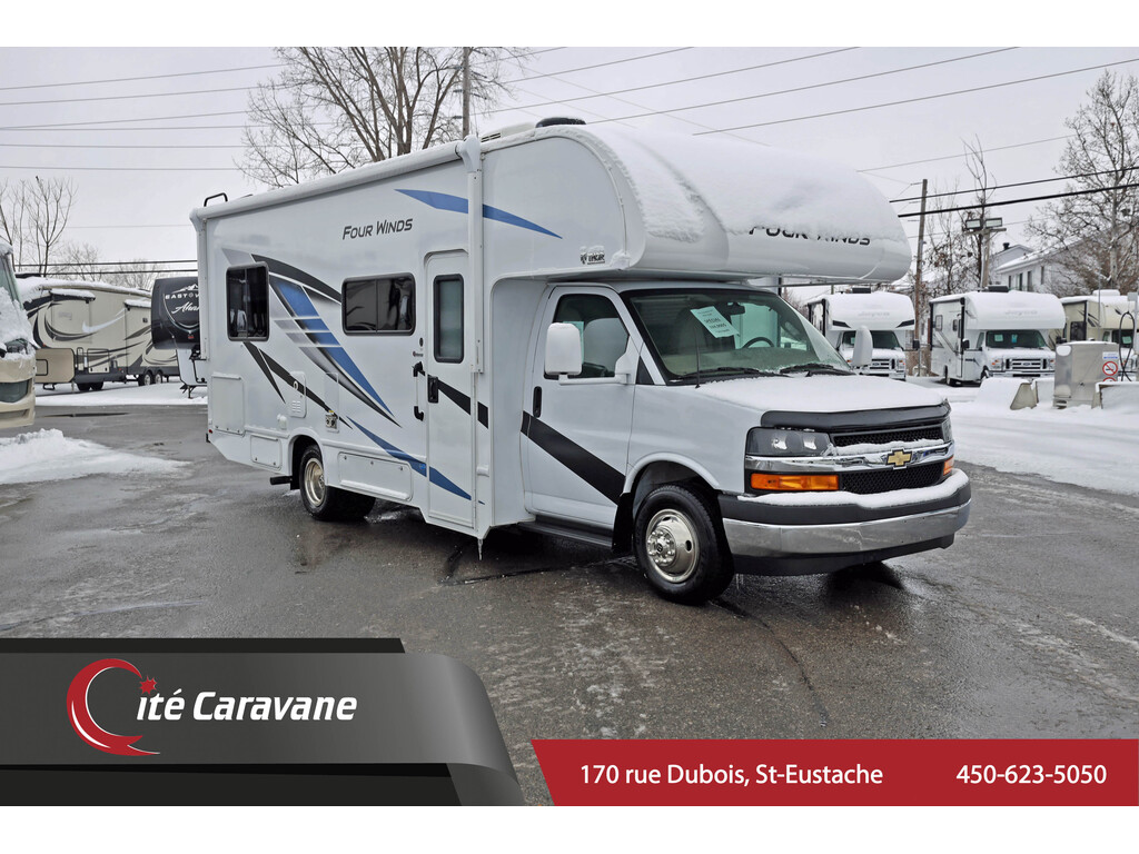 Thor Four Winds 25V 2024 avec seulement 5000km. Vr avec Châssis Chevrolet avec mécanique 8 cylindre. Les équipements sont les suivants : Auvent électrique avec lumière LED, marche pieds aluminium, grand coffre bord en bord, cap mouler en fibre de vers avant, déflecteur de vents sur capot, toile protectrice pour l’extension, génératrice 4000W, Système de chauffage et air climatiser centrale, finition au gouts du jour 2 ton, robinetterie élégants doré, frigo 12V de grand format, four avec 3 ronds, grand évier en Stainless, Chambre avec twin bed arrière ou Lit King et rangement a profusion, grande télévisons, grande salle de bain et encore plus !! Financement disponible MEILLEUR PRIX AU QUÉBEC www.citecaravane.com 450-623-5050 170 RUE DUBOIS , ST-EUSTACHE, SUR LE BORD DE LA 640! UNE ENTREPRISE FAMILIALE A VOTRE SERVICE DEPUIS 1973 ! LE SPÉCIALISTE DU VR AU QUÉBEC-------------------------------------------------------------------- 2024 Thor Four Winds 25V with only 5000km. RV with Chevrolet chassis and 8-cylinder engine. Features include: Electric awning with LED lights, aluminum steps, large edge-to-edge storage, molded fiberglass front cap, hood deflector, slide topper, 4000W generator, central heating and air conditioning system, modern two-tone finish, elegant gold faucets, full-size 12V refrigerator, 3-burner oven, large stainless steel sink, rear twin bed bedroom or King size bed with ample storage, large TVs, large bathroom, and much more!! Financing available. BEST PRICE IN QUEBEC www.citecaravane.com 450-623-5050 170 DUBOIS STREET, ST-EUSTACHE, ON HIGHWAY 640! A FAMILY BUSINESS AT YOUR SERVICE SINCE 1973! THE RV SPECIALIST IN QUEBEC