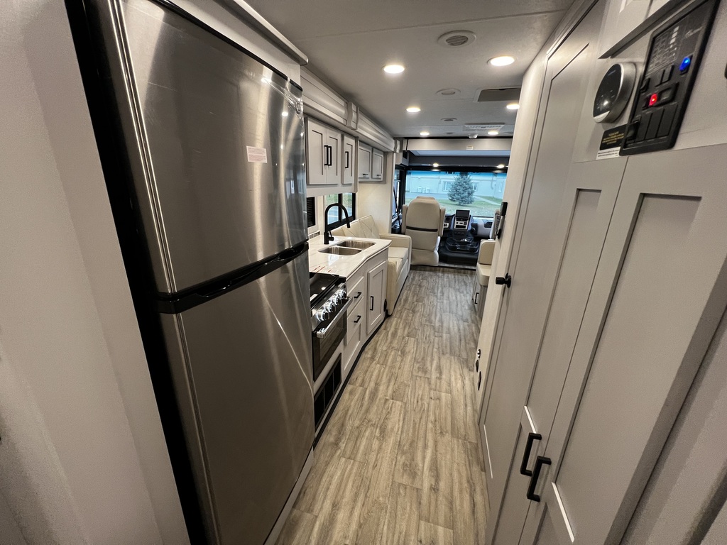 Le Coachmen Pursuit 29SS 2026 est un motorisé de Classe A à essence qui maximise l'espace et le confort pour les longs séjours et les familles nombreuses. Avec une longueur d'environ 30 pieds 3 pouces et l'ajout d'une extension de pleine longueur (Slide-out), le 29SS offre un salon et une cuisine exceptionnellement spacieux une fois stationné. Il est construit sur le châssis robuste Ford F53 et intègre la construction Azdel dans ses parois latérales pour une durabilité et une isolation supérieures. Pour l'autonomie, il est équipé d'une puissante génératrice de 5,5 kW et 2 système de climatisation (A/C) avec pompe à chaleur. Le 29SS excelle dans l'art de vivre en plein air, proposant une cuisine extérieure complète et un auvent électrique de 20 pieds. Avec ses nombreux couchages, dont le lit escamotable avant et le canapé-lit de 63 pouces, le 29SS est le choix idéal pour un voyage sans compromis.