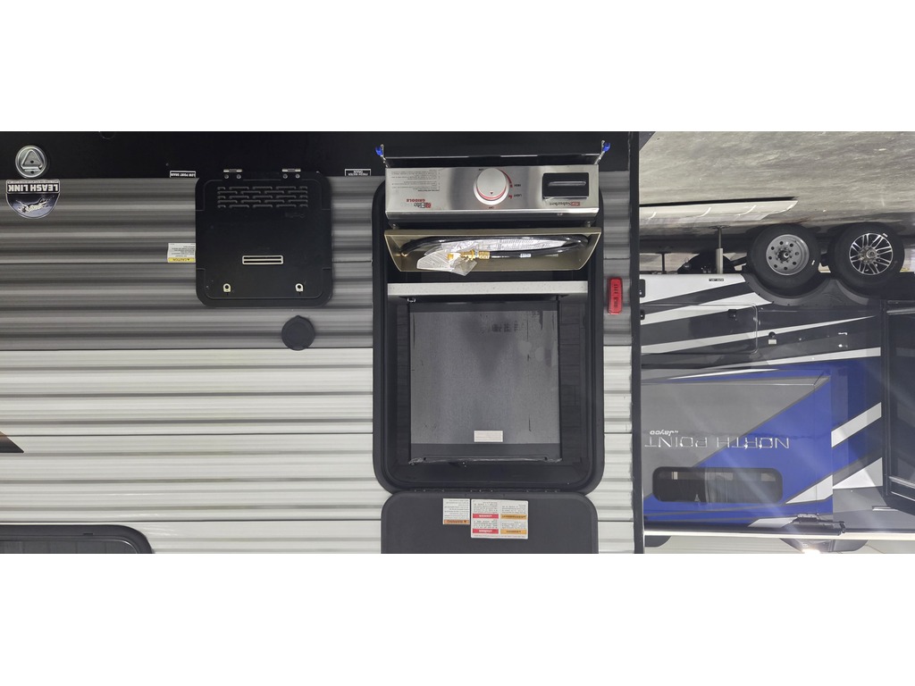 Options : Réservoir de propane, Douche extérieure, Douche, Toilette, Prise électrique, Prise cable, Micro-onde, Cuisinière, Four, Hotte, Auvent, C...