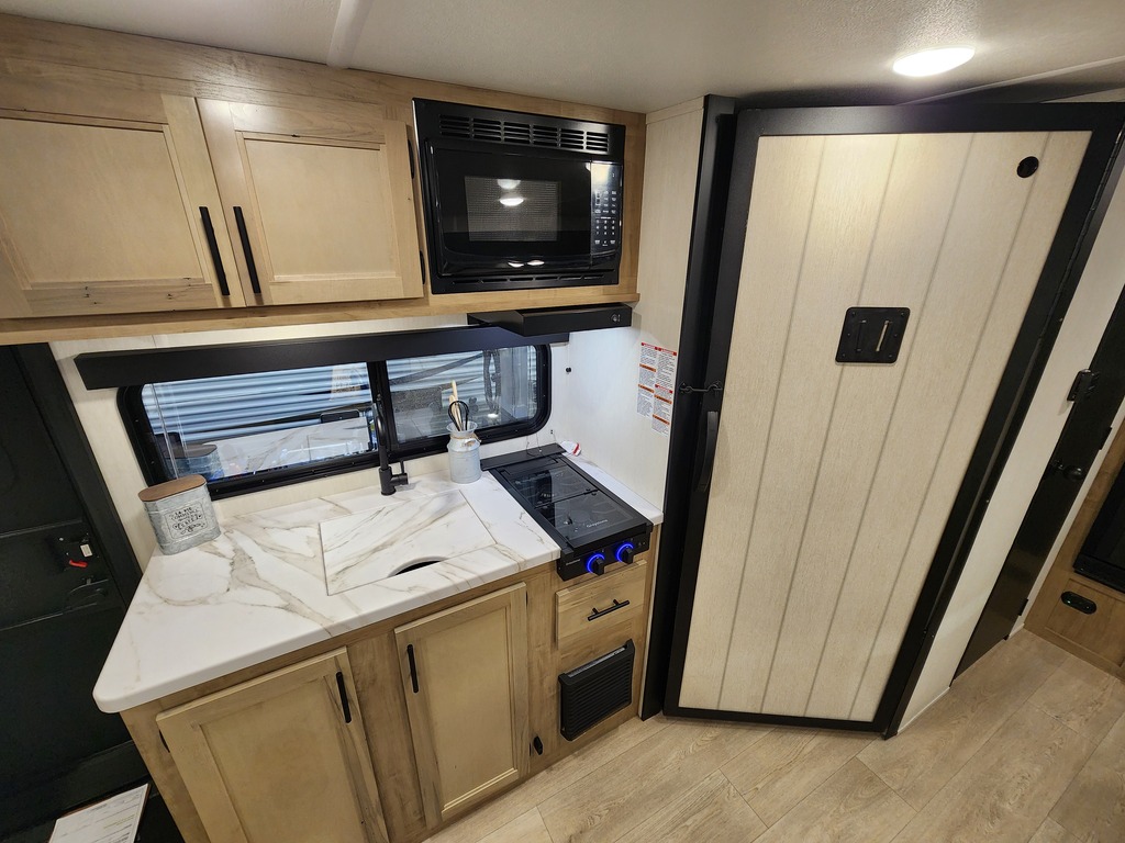 BULLET 21RKC 2026 ROULOTTE POUR COUPLE AVEC UN POIDS DE 4800 LIVRES INTÉRIEUR: - Cuisine avec grand réfrigérateur, grand évier, 2 ronds de poêle ...