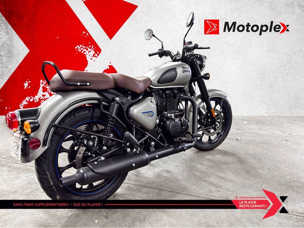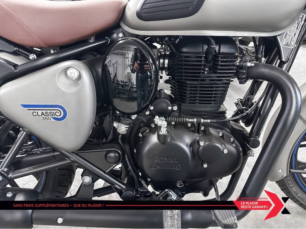 CLASSIC 350 CLASSIC *123 km* ROYAL ENDFIELD CLASSIC 350 TRES BAS KILLOMETRAGE LOOK RETRO MODERNE STYLE ANGLAISE (TRIUMPH) GARANTIE PROLONGÉE jusqu'à 4 ans disponible et plan d’entretien Financement approuvé — 1re, 2e et 3e chance au crédit! Testez-nous et trouvez la meilleure solution, au meilleur taux. Votre incontournable du financement ! GROUPE MOTOPLEX – LA RÉFÉRENCE AU QUÉBEC POUR L’ACHAT DE VOTRE VÉHICULE RÉCRÉATIF Avec plus de 500 véhicules en inventaire répartis dans nos 2 succursales, GROUPE MOTOPLEX vous offre un choix exceptionnel aux prix les plus compétitifs du marché. Chaque véhicule d’occasion est inspecté en multipoints, entièrement reconditionné et prêt à la livraison, pour vous garantir qualité, fiabilité et tranquillité d’esprit. Nos prix sont ajustés en temps réel, et nous acceptons tout type d’échange pour vous offrir la meilleure transaction! Prêts à la livraison rapide, avec possibilité de prise de livraison le jour même selon disponibilité. Nous livrons partout au CANADA. GROUPE MOTOPLEX — NOTRE RAISON, VOTRE PASSION.