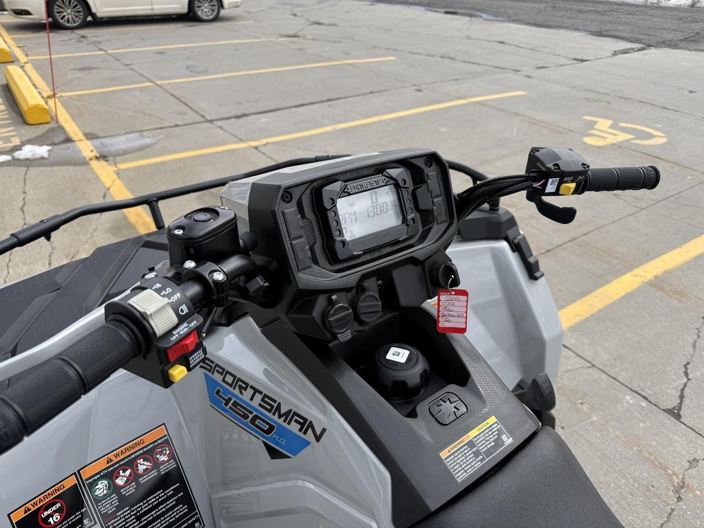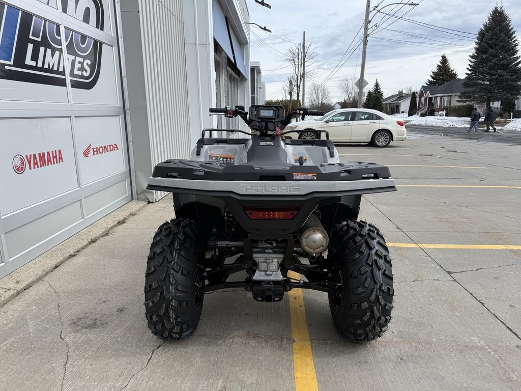 Polaris Sportsman 450 H.O. 2026   Le Polaris Sportsman 450 H.O. 2026 chez Moto Sport 100 Limites à Drummondville est un VTT utilitaire polyvalent conçu pour répondre aux besoins de travail, loisirs et randonnée tout-terrain. Avec un moteur robuste, une traction efficace et une capacité de remorquage élevée, ce modèle représente une option fiable pour les utilisateurs qui recherchent une machine performante sans assistance de direction électronique (EPS), tout en conservant les caractéristiques essentielles de la série Sportsman.   Caractéristiques techniques du Polaris Sportsman 450 H.O. 2026   - Moteur : ProStar monocylindre 4-temps de 499?cm³ avec refroidissement liquide et injection électronique pour performance régulière et couple constant.  - Puissance : Environ 33?ch adaptée à usage utilitaire et récréatif.  - Transmission : Automatique PVT avec positions P/R/N/L/H, facilitant le contrôle sur différents terrains.  - Traction : Système à sélection on-demand AWD/2WD pour meilleure adhérence selon les conditions.  - Suspension : Avant à jambes MacPherson et arrière à bras en A indépendant (IRS) pour confort et contrôle.  - Garde au sol : ~11,5?po (29?cm) pour franchir obstacles et terrains accidentés.  - Capacité de remorquage : Jusqu'à ~1?350?lb (612?kg), pratique pour charge lourde et équipements.  - Racks : Charge utile combinée élevée pour transporter outils, équipement ou récoltes.  - Dimensions clés : environ 83?po L × 48?po?W × 47?po?H, siège unique pour confort de conduite.  - Capacité carburant : ~4,5?gal (17?L), suffisant pour longues sorties.  - Prix de base indicatif au Canada : ~9?889?$ CA, prix constructeur suggéré (concessionnaire peut varier).   Ce modèle est conçu pour les utilisateurs qui préfèrent une configuration sans assistance de direction électronique (EPS), tout en bénéficiant des capacités utilitaires et tout-terrain reconnues de Polaris.   Points forts du Sportsman 450 H.O. 2026   - Puissance et couple adaptés à une variété de terrains et de charges.  - Transmission automatique PVT simple d'utilisation.  - Traction AWD/2WD permet d'ajuster la réponse selon conditions.  - Garde au sol élevée pour surmonter obstacles en sentier.  - Capacité de remorquage et de charge utile solides pour le travail.   Pourquoi choisir le Polaris Sportsman 450 H.O. 2026 à Drummondville ?   Le Sportsman 450 H.O. 2026est adapté pour les propriétaires qui veulent :   - Une machine utilitaire fiable pour travaux agricoles, de la ferme ou terrains accidentés.  - Un VTT pratique pour randonnées et exploration hors-route dans les sentiers du Québec.  - Une configuration sans EPS pour une conduite plus directe et mécanique.   Pourquoi Moto Sport 100 Limites à Drummondville ?   - Concessionnaire Polaris certifié au Centre-du-Québec.  - Inventaire complet de VTT Polaris incluant les modèles utilitaires.  - Support technique et pièces d'origine Polaris disponibles.  - Conseils spécialisés pour trouver la configuration adaptée à vos besoins.  - Service après-vente professionnel et dédié aux régions Drummondville, Victoriaville, Trois-Rivières, Sherbrooke, Granby et Sorel.   Découvrez le Polaris Sportsman 450 H.O. 2026dès maintenant chez Moto Sport 100 Limites à Drummondville. Localisé au Centre-du-Québec, à proximité de Victoriaville, Trois-Rivières, Sherbrooke, Granby et Sorel. Appelez-nous au (819)?445-6686 !