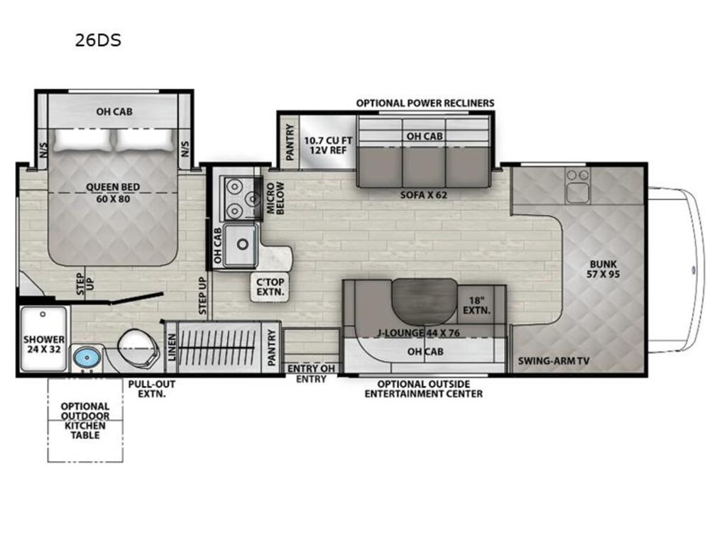 Coachmen Freelander 26DS essence 2026Motorisé Classe C Freelander 26DS 2026 – Essence Mesure 27’42'' Jack Hydrolique Autonivellant Construit sur le robuste châssis Ford E-450, ce motorisé est propulsé par un puissant moteur V8 7,3 L développant 325 HP et 450 LB-PI de couple, jumelé à une transmission automatique TorqShift à surmultiplication. Avec une capacité de remorquage de 7 500 lb, vous aurez la liberté d’apporter tout l’équipement nécessaire à vos aventures. Caractéristiques principales Réservoir d’eau potable : 50 GAL Réservoir d’eaux grises : 62 GAL Système de rinçage du réservoir noir Réservoirs chauffés Sofa de type théâtre, une dinette en U et un téléviseur intelligent 12 V de 40 po au salon. La couchette en capucine est équipée d’un filet de sécurité et d’une échelle, tandis que les sièges de cockpit en similicuir offrent style et durabilité. La cuisine est pensée pour la commodité, incluant un réfrigérateur 12 V de 10 pi³, un four à convection, un évier inoxydable avec robinet à douchette et, en option, des comptoirs en surface solide. Chauffe-eau sans réservoir, et des ventilateurs de cabine et de chambre avec couvercle Maxxair. Caméras de recul et de vue latérale avec moniteur Radio de tableau de bord CarPlay / Android Auto Amplificateur 5G/Wi-Fi Centre de divertissement extérieur avec téléviseur et barre de son Bluetooth Auvent électrique de 18 pi avec bande LED Compartiment arrière roto-moulé Douche et table extérieures Raccord rapide LP Système de stabilisation et vérins hydrauliques (en option) Panneau solaire de 200 W avec contrôleur 30 A et batteries AGM doubles Fauteuils inclinables électriques doubles Sièges pivotants conducteur/passager avec table et housse de pare-brise Téléviseur de chambre (24 po) Système de climatisation double (avant 15 000 BTU avec thermopompe + arrière 11 000 BTU) Démarrage automatique du générateur *** Prendre note que les photos et les options décrites peuvent différées *** Toute l'équipe de Centre du VR est fière de vous présenter le plus vaste inventaire de véhicules récréatifs neufs et d'occasions à vendre au Québec. Vous y trouverez notamment les marques Columbus, Rockwood, Impression, Kodiak, Coleman, Cruiser RV, Flagstaff, E-Pro, Springdale, Sunset Trail, Cougar, Chaparral, Bontrager Outdoors, motorisés Axis, Hurricane, Outlaw, Coachmen Cross Trail, Prism, Echelon, Fleetwood, Four winds, Compass, Beyond, Nova et Pixel. Remorques N&N, Apogée et Armorteck sont aussi disponibles. En inventaire pour vous, la série de génératrices Ducar. Vous avez un coup de coeur ? Envoyez-nous une demande d'information. Financement sur place. N'oubliez pas également que rien ne vaut une visite du modèle qui vous intéresse pour vous aider à prendre une décision éclairée. Passez donc nous voir afin de jeter un coup d'oeil plus détaillé à nos caravanes et caravanes à sellettes neuves.