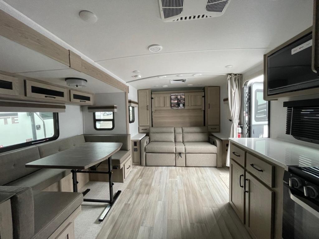 Rockwood Mini Lite 2517S 2024Rockwood Mini lite 2517S 2024 Cette unité mesure 25,92pi et pèse 5 774 lbs. Possède panneau solaire de 200watt et convertisseur de 1800watt. Elle peut accueillir jusqu'à 4 personnes au coucher, car elle possède une chambre des maîtres avec un lit queen size et comprend également un sofa-lit ainsi deux sofa inclinable. Côté cuisine, on y retrouve une cuisinière à 3 brûleurs, un frigo de taille moyenne et une dinette. La salle de bain comprend une toilette, une douche ainsi qu’une vanité. L’extérieur en fibre de verre, cette unité possède un auvent de 18’ et un extensions. Elle possède un réservoir d'eau fraîche de 54 gal., d'eaux usées de 90 gal. *** Prendre note que les photos et les options décrites peuvent différées *** Toute l'équipe de Centre du VR est fière de vous présenter le plus vaste inventaire de véhicules récréatifs neufs et d'occasions à vendre au Québec. Vous y trouverez notamment les marques Columbus, Rockwood, Impression, Kodiak, Coleman, Cruiser RV, Flagstaff, E-Pro, Springdale, Sunset Trail, Cougar, Chaparral, Bontrager Outdoors, motorisés Axis, Hurricane, Outlaw, Coachmen Cross Trail, Prism, Echelon, Fleetwood, Four winds, Compass, Beyond, Nova et Pixel. Remorques N&N, Apogée et Armorteck sont aussi disponibles. En inventaire pour vous, la série de génératrices Ducar. Vous avez un coup de coeur ? Envoyez-nous une demande d'information. Financement sur place. N'oubliez pas également que rien ne vaut une visite du modèle qui vous intéresse pour vous aider à prendre une décision éclairée. Passez donc nous voir afin de jeter un coup d'oeil plus détaillé à nos caravanes et caravanes à sellettes neuves.