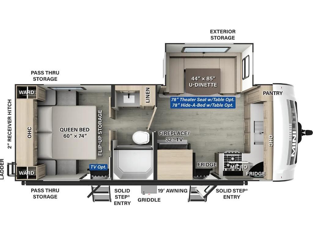 Rockwood Mini Lite 2506FK 2025Roulotte Rockwood Mini Lite 2506FK 2025 – Spacieuse, moderne et bien pensée! Dimensions & Poids : • Longueur : 25,92 pi • Poids à sec : 5 689 lbs Capacités : • Réservoir d’eau fraîche : 54 gal • Réservoirs d’eaux usées (grises et noires) : 79 gal au total Éléments extérieurs : • 1 extension pour agrandir l’espace intérieur • Auvent rétractable pour des moments à l’extérieur à l’abri du soleil Caractéristiques intérieures : • Cuisine avant moderne avec cuisinière/fourneau, micro-ondes, hotte, grand évier et réfrigérateur • Dinette en U idéale pour les repas en groupe • Téléviseur et foyer électrique pour une ambiance chaleureuse • Chambre spacieuse avec grand lit et beaucoup de rangement (au-dessus et sous le lit) • Salle de bain communicante entre la chambre et l’aire commune avec toilette, vanité et douche Cette roulotte allie confort, design et fonctionnalité dans un format parfait pour les escapades prolongées ou de fins de semaine. Idéale pour les couples ou petites familles à la recherche d’un modèle haut de gamme bien conçu. *** Prendre note que les photos et les options décrites peuvent différées *** Toute l'équipe de Centre du VR est fière de vous présenter le plus vaste inventaire de véhicules récréatifs neufs et d'occasions à vendre au Québec. Vous y trouverez notamment les marques Columbus, Rockwood, Impression, Kodiak, Coleman, Cruiser RV, Flagstaff, E-Pro, Springdale, Sunset Trail, Cougar, Chaparral, Bontrager Outdoors, motorisés Axis, Hurricane, Outlaw, Coachmen Cross Trail, Prism, Echelon, Fleetwood, Four winds, Compass, Beyond, Nova et Pixel. Remorques N&N, Apogée et Armorteck sont aussi disponibles. En inventaire pour vous, la série de génératrices Ducar. Vous avez un coup de coeur ? Envoyez-nous une demande d'information. Financement sur place. N'oubliez pas également que rien ne vaut une visite du modèle qui vous intéresse pour vous aider à prendre une décision éclairée. Passez donc nous voir afin de jeter un coup d'oeil plus détaillé à nos caravanes et caravanes à sellettes neuves.