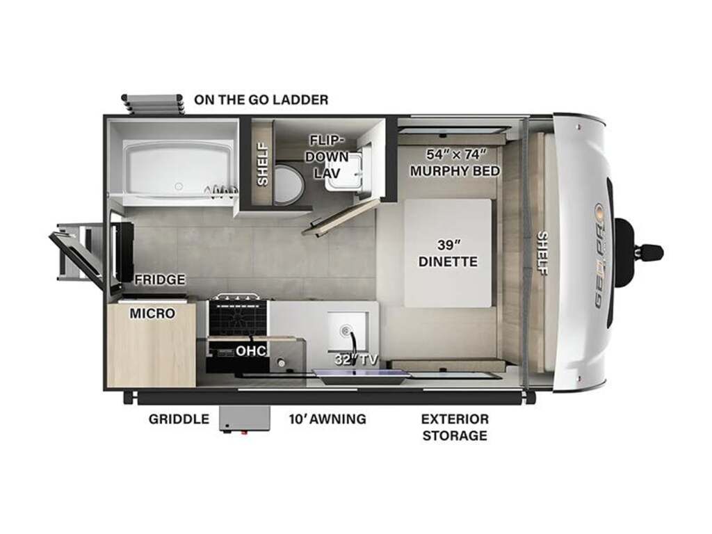Rockwood Geopro 15FDG 2026Roulotte – Rockwood 15FDG Geopro 2025 - Compacte, polyvalente et bien pensée, la Geo Pro G15FDG 2025 est idéale pour les campeurs qui veulent partir à l’aventure avec confort, sans s’encombrer. Dimensions & Capacités : • Longueur totale : 15.67 pieds • Poids à sec : 2 985 lbs • Réservoir d’eau douce : 31 gal • Réservoirs d’eaux usées : 54 gal • Couchages : Jusqu’à 2 personnes 5 caractéristiques principales : • Lit Murphy escamotable pour plus d’espace - Le lit se replie contre le mur pendant la journée, libérant ainsi un bel espace pour circuler ou s’asseoir. Une solution parfaite pour optimiser un petit espace sans sacrifier le confort de nuit. • Coin repas pratique et transformable - La banquette dinette sert de coin repas pour deux, d’espace détente ou même de couchage d’appoint. C’est un espace polyvalent qui s’adapte à vos besoins, même lors des séjours à deux ou en solo. • Salle de bain complète et fonctionnelle - Malgré sa petite taille, cette roulotte offre une vraie salle de bain à bord : douche, toilette et lavabo sont regroupés dans un espace pratique, pour garder votre autonomie même en terrain rustique. • Cuisine extérieure sous l’auvent - Préparez vos repas à l’extérieur tout en restant à l’ombre, grâce à la cuisinette intégrée à l’extérieur. Parfait pour les petits déjeuners en plein air ou les soupers au coucher du soleil, sans surchauffer l’intérieur. • Format compact, facile à tracter et à manœuvrer - Son gabarit court (environ 16 pi) et son poids léger en font une roulotte facile à tirer avec un petit VUS ou camion. Elle est idéale pour les escapades spontanées, les terrains plus étroits ou les déplacements fréquents. Facile à tracter, pleine de solutions astucieuses et agréable à vivre, elle vous suit partout et transforme chaque sortie en escapade réussie. *** Prendre note que les photos et les options décrites peuvent différées *** Toute l'équipe de Centre du VR est fière de vous présenter le plus vaste inventaire de véhicules récréatifs neufs et d'occasions à vendre au Québec. Vous y trouverez notamment les marques Columbus, Rockwood, Impression, Kodiak, Coleman, Cruiser RV, Flagstaff, E-Pro, Springdale, Sunset Trail, Cougar, Chaparral, Bontrager Outdoors, motorisés Axis, Hurricane, Outlaw, Coachmen Cross Trail, Prism, Echelon, Fleetwood, Four winds, Compass, Beyond, Nova et Pixel. Remorques N&N, Apogée et Armorteck sont aussi disponibles. En inventaire pour vous, la série de génératrices Ducar. Vous avez un coup de coeur ? Envoyez-nous une demande d'information. Financement sur place. N'oubliez pas également que rien ne vaut une visite du modèle qui vous intéresse pour vous aider à prendre une décision éclairée. Passez donc nous voir afin de jeter un coup d'oeil plus détaillé à nos caravanes et caravanes à sellettes neuves.