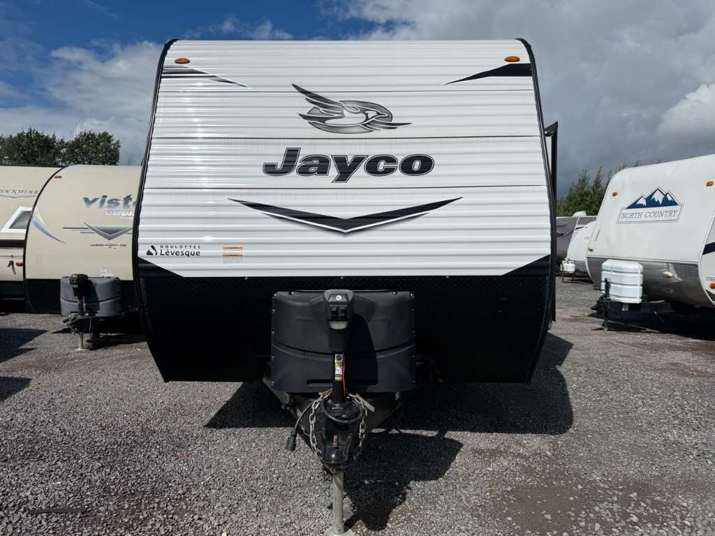 Jayco JAY FEATHER 267BHS 2022Caractéristiques du Jayco Jay Flight SLX 8 – 267BHS (2022) Dimensions et poids : • Longueur : ~30'4'' • Largeur : 8' (2,44 m), avec slide-out 11' • Poids à sec : ~5 770 lb Capacité des réservoirs : • Eau propre : 38 gal • Eaux grises : 39 gal • Eaux noires : 39 gal Aménagement intérieur & confort : • Capacité de couchage : jusqu’à 10 personnes • Lits : lit queen à l’avant + banquettes convertibles/sofas • Salle de bain arrière (toilette + douche avec rideau) *** Prendre note que les photos et les options décrites peuvent différées *** Toute l'équipe de Centre du VR est fière de vous présenter le plus vaste inventaire de véhicules récréatifs neufs et d'occasions à vendre au Québec. Vous y trouverez notamment les marques Columbus, Rockwood, Impression, Kodiak, Coleman, Cruiser RV, Flagstaff, E-Pro, Springdale, Sunset Trail, Cougar, Chaparral, Bontrager Outdoors, motorisés Axis, Hurricane, Outlaw, Coachmen Cross Trail, Prism, Echelon, Fleetwood, Four winds, Compass, Beyond, Nova et Pixel. Remorques N&N, Apogée et Armorteck sont aussi disponibles. En inventaire pour vous, la série de génératrices Ducar. Vous avez un coup de coeur ? Envoyez-nous une demande d'information. Financement sur place. N'oubliez pas également que rien ne vaut une visite du modèle qui vous intéresse pour vous aider à prendre une décision éclairée. Passez donc nous voir afin de jeter un coup d'oeil plus détaillé à nos caravanes et caravanes à sellettes neuves.